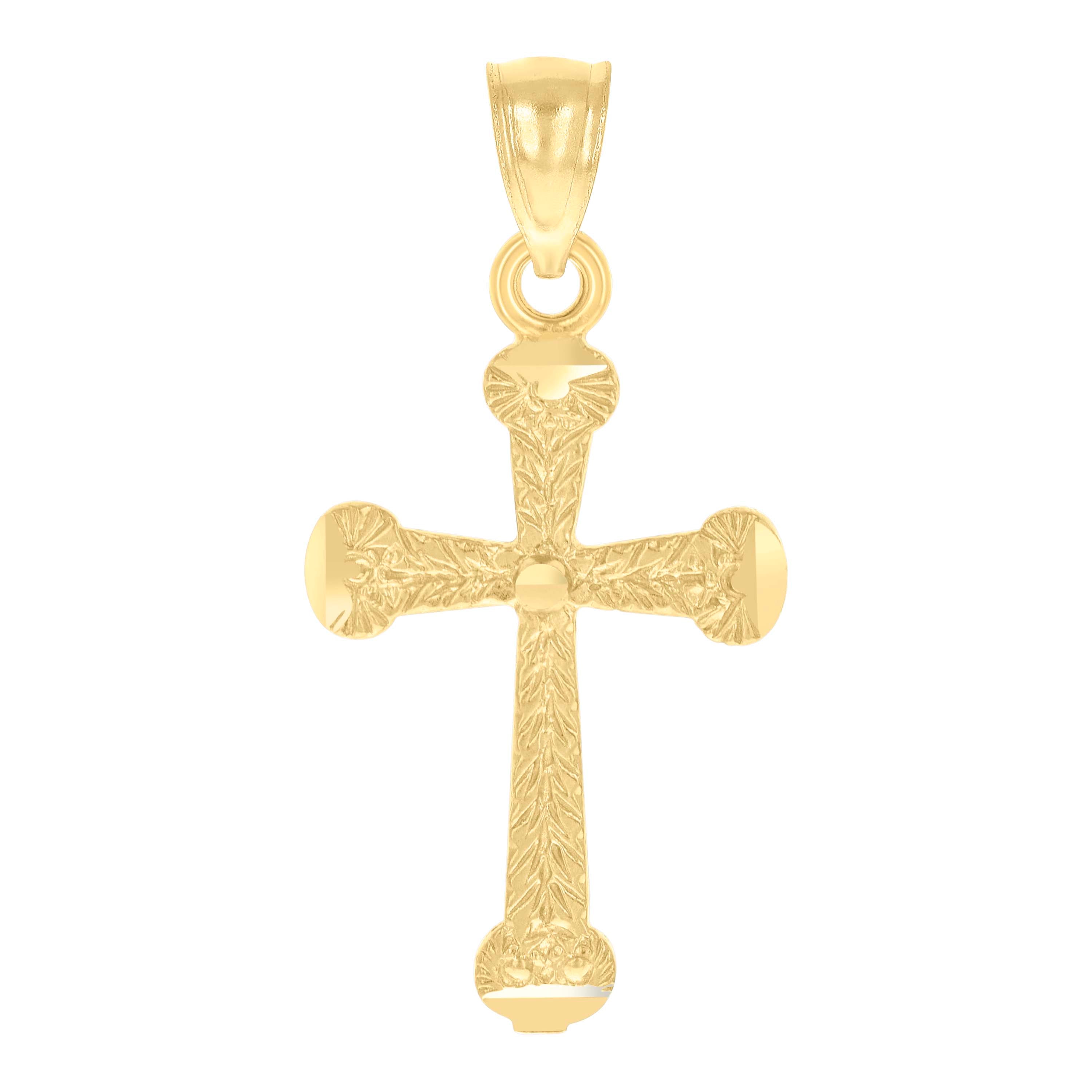 14Kt Yellow Gold Unisex Diamond-Cut Cross Ht:30.4Mm Religious Pendant Charm†