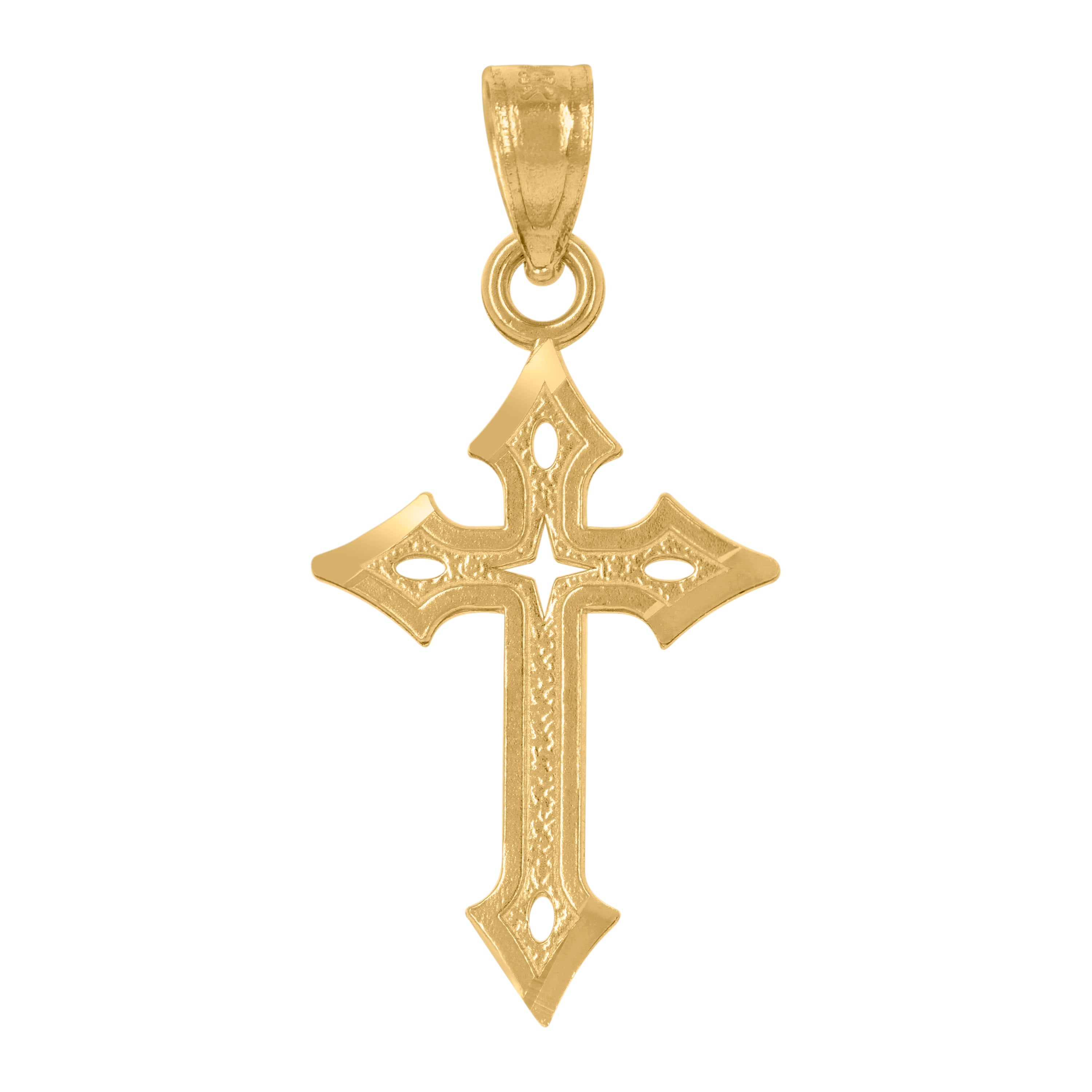 14Kt Yellow Gold Unisex Diamond-Cut Cross Religious Pendant Charm
