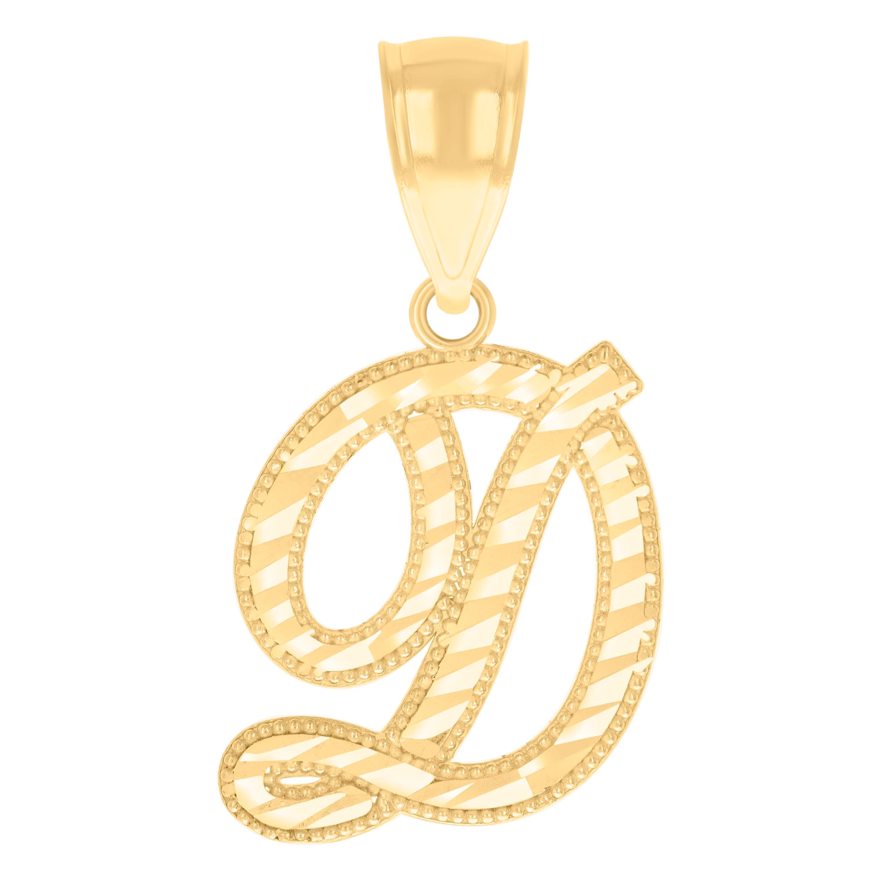 14kt Yellow Gold Unisex Diamond-cut Initial Alphabet D Charm Pendant