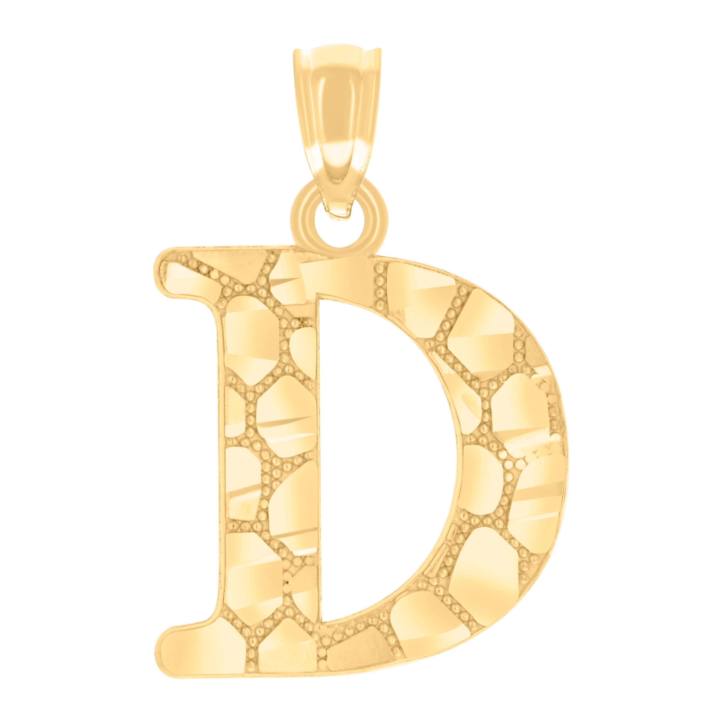 14Kt Yellow Gold Unisex Diamond-cut Nugget Unisex Initial Alphabet D Charm Pendant