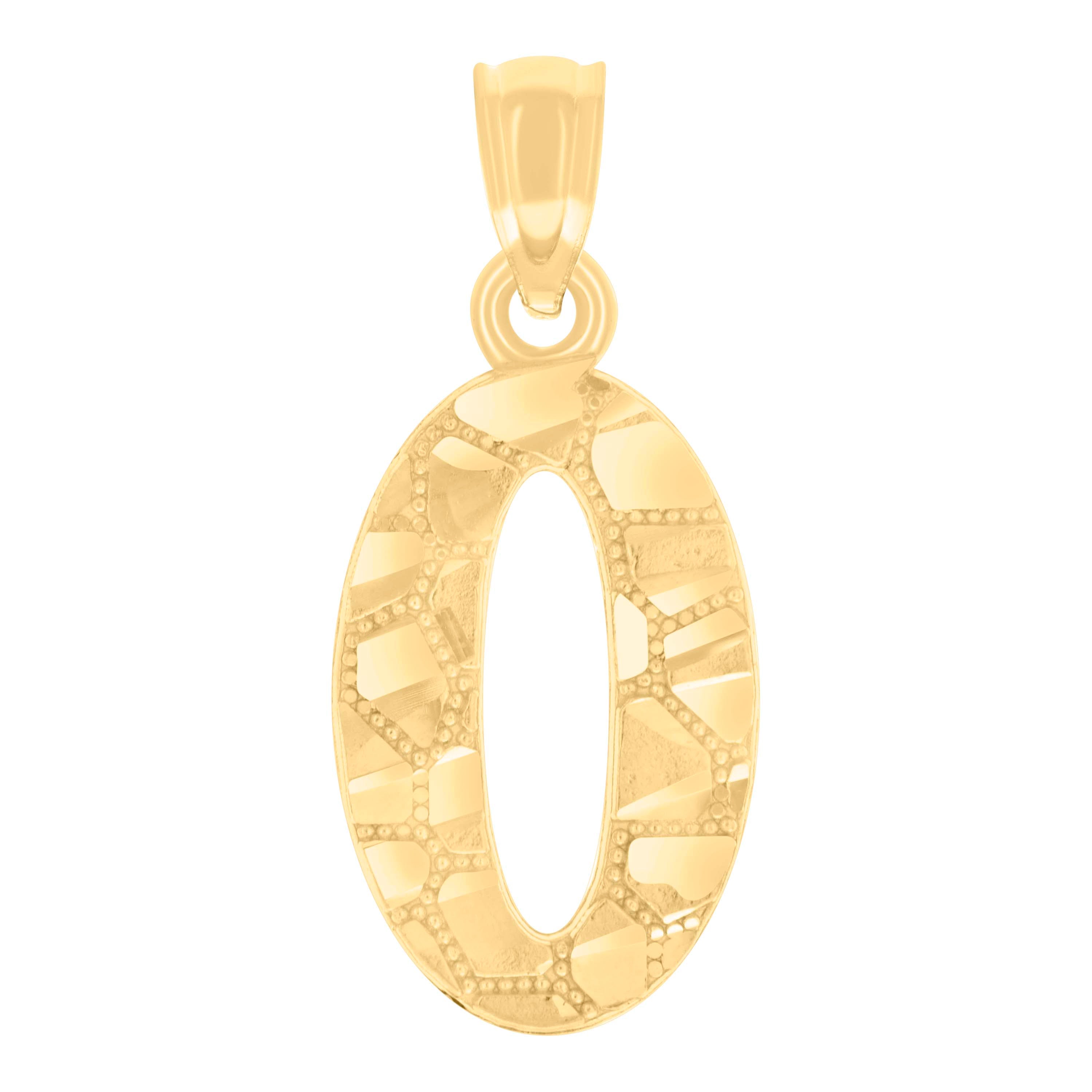14Kt Yellow Gold Unisex Diamond-cut Nugget Unisex Initial Number 0 Charm Pendant