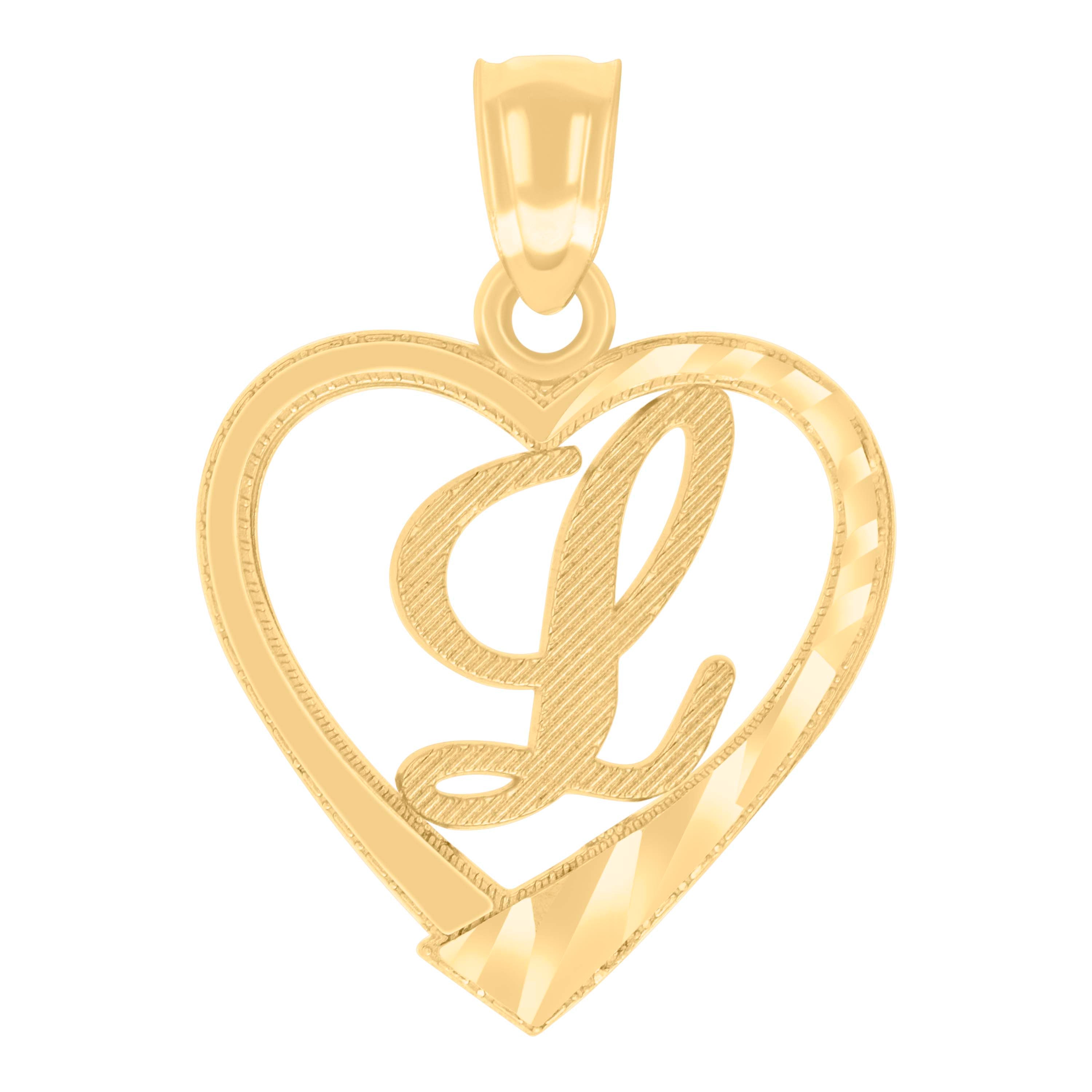 14Kt Yellow Gold Unisex Diamond-cut Unisex Initial Alphabet L Heart Charm Pendant
