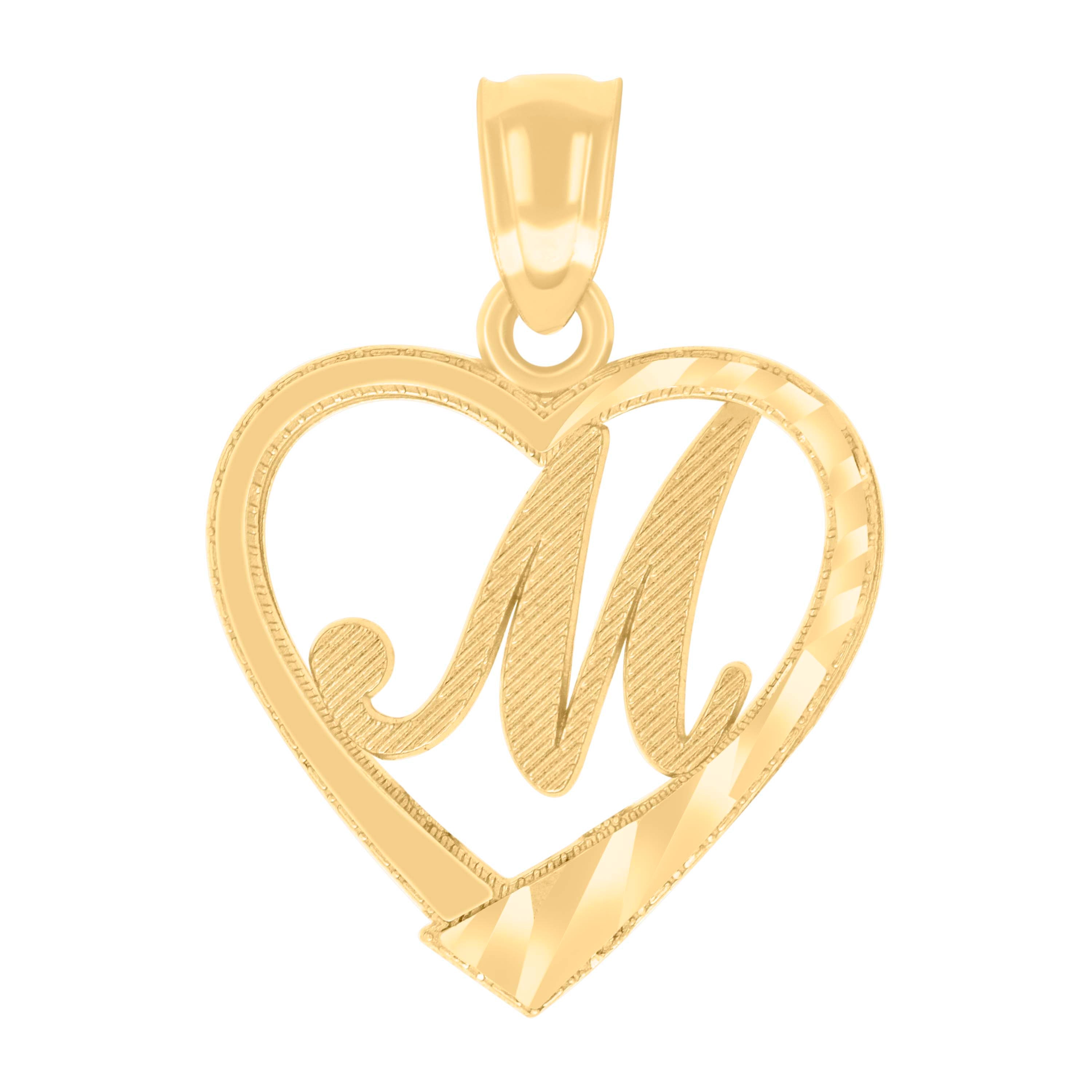 14Kt Yellow Gold Unisex Diamond-cut Unisex Initial Alphabet M Heart Charm Pendant