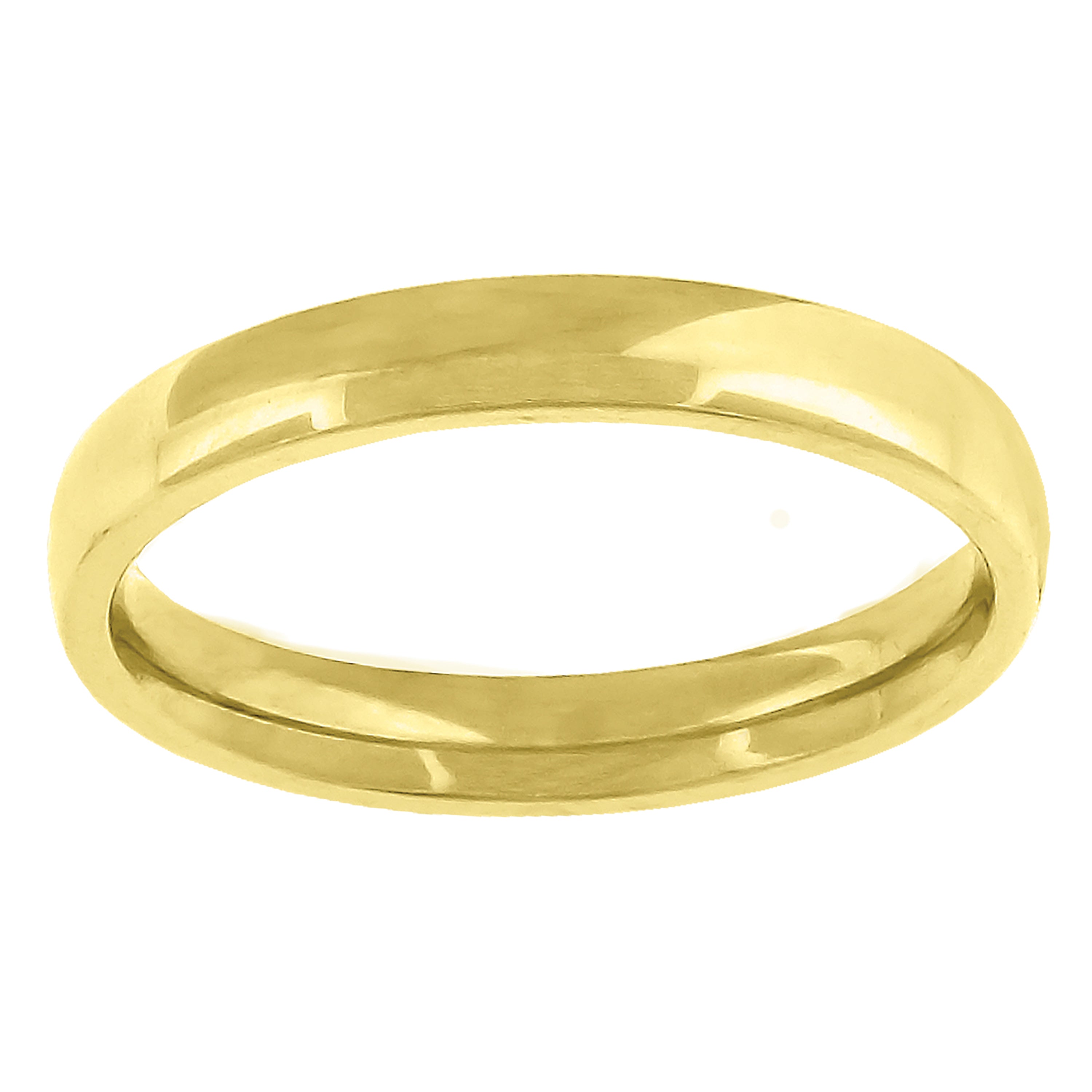 Crafted in luminous 14Kt yellow gold, this unisex wedding band showcases a classic dome silhouette with a high-polish finish that catches the light beautifully. At 3 mm wide and approximately 3 grams, it delivers an elegant, understated profile perfect for everyday wear. The comfort-fit interior ensures a smooth, effortless feel on the finger, making it ideal for long-term wear. Designed in size 8 and free of CZ or gemstones, this timeless ring is a refined choice for weddings, engagements, or a meaningful daily band.