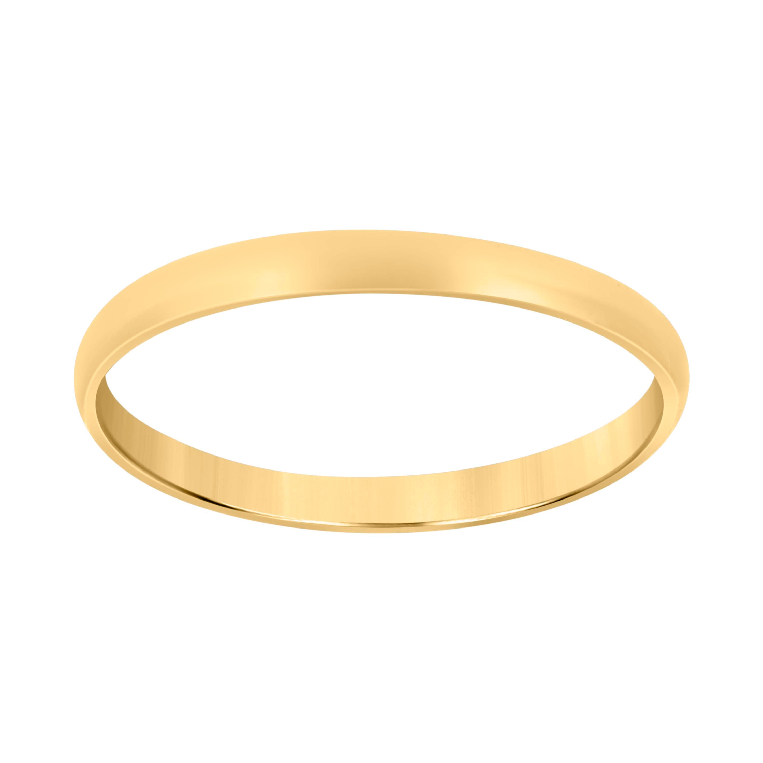 Timeless and effortlessly elegant, this 14kt yellow gold unisex band is a classic choice for weddings, engagements, and anniversaries. Crafted in a regular-fit dome silhouette with a high-polish finish, it delivers a smooth, comfortable feel and a brilliant shine that complements any style. Lightweight at 1.3 grams yet durable for everyday wear, this 2 mm slim profile (approx. 3 mm outer dome width) offers a refined, minimalist look that stacks beautifully or stands alone. Size 9, without CZ, for those who appreciate pure, understated gold.