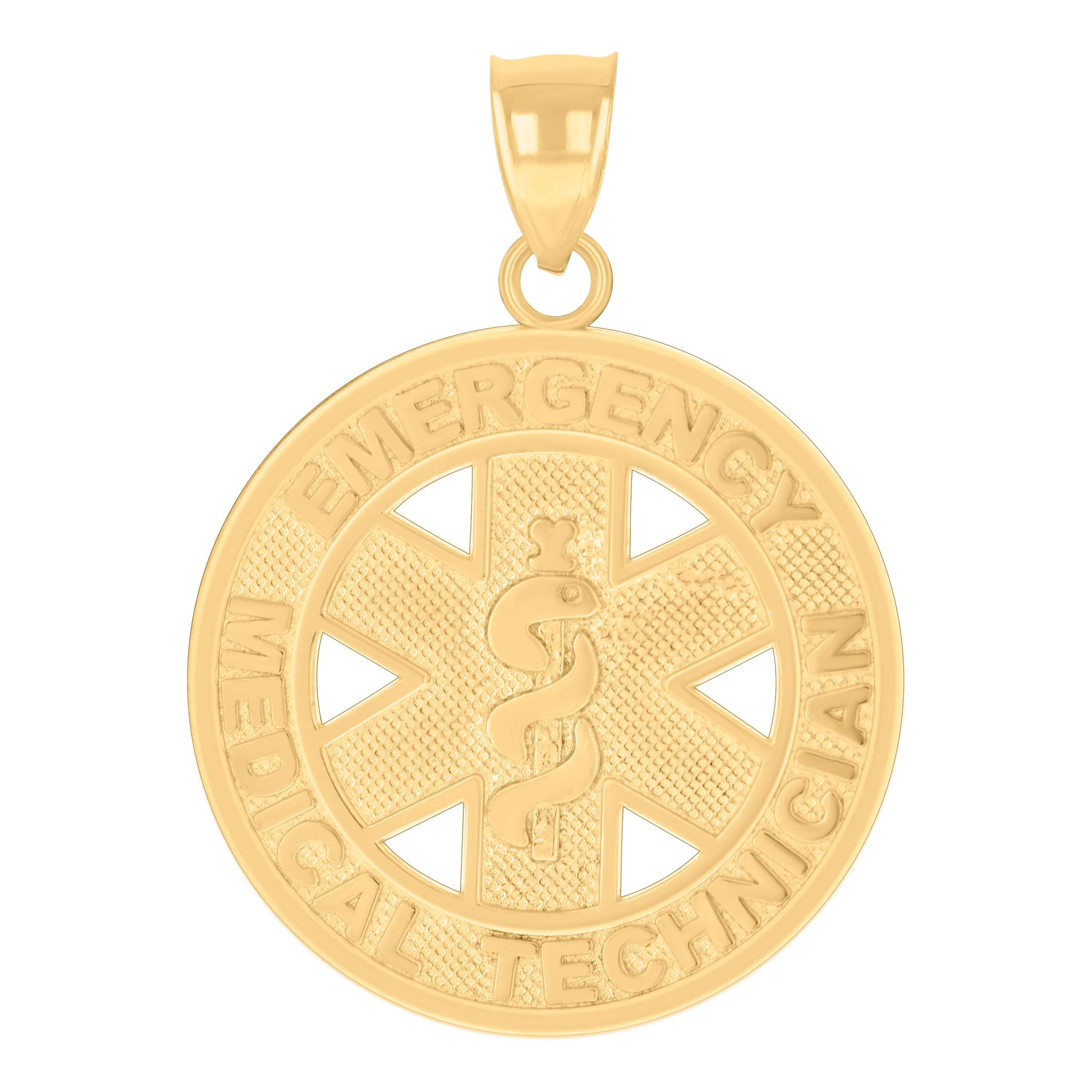Experience the timeless elegance and strength of our 14kt Yellow Gold Unisex Emergency Medical Technician Badge Charm Pendant. Crafted with a textured finish, this stunning piece symbolizes dedication and service. Weighing 2.3 grams, it features a single bail closure for secure wear. Measuring 28.1MM in height and 20.3MM in width, this charm is a perfect blend of style and purpose, ideal for any EMT professional or enthusiast.