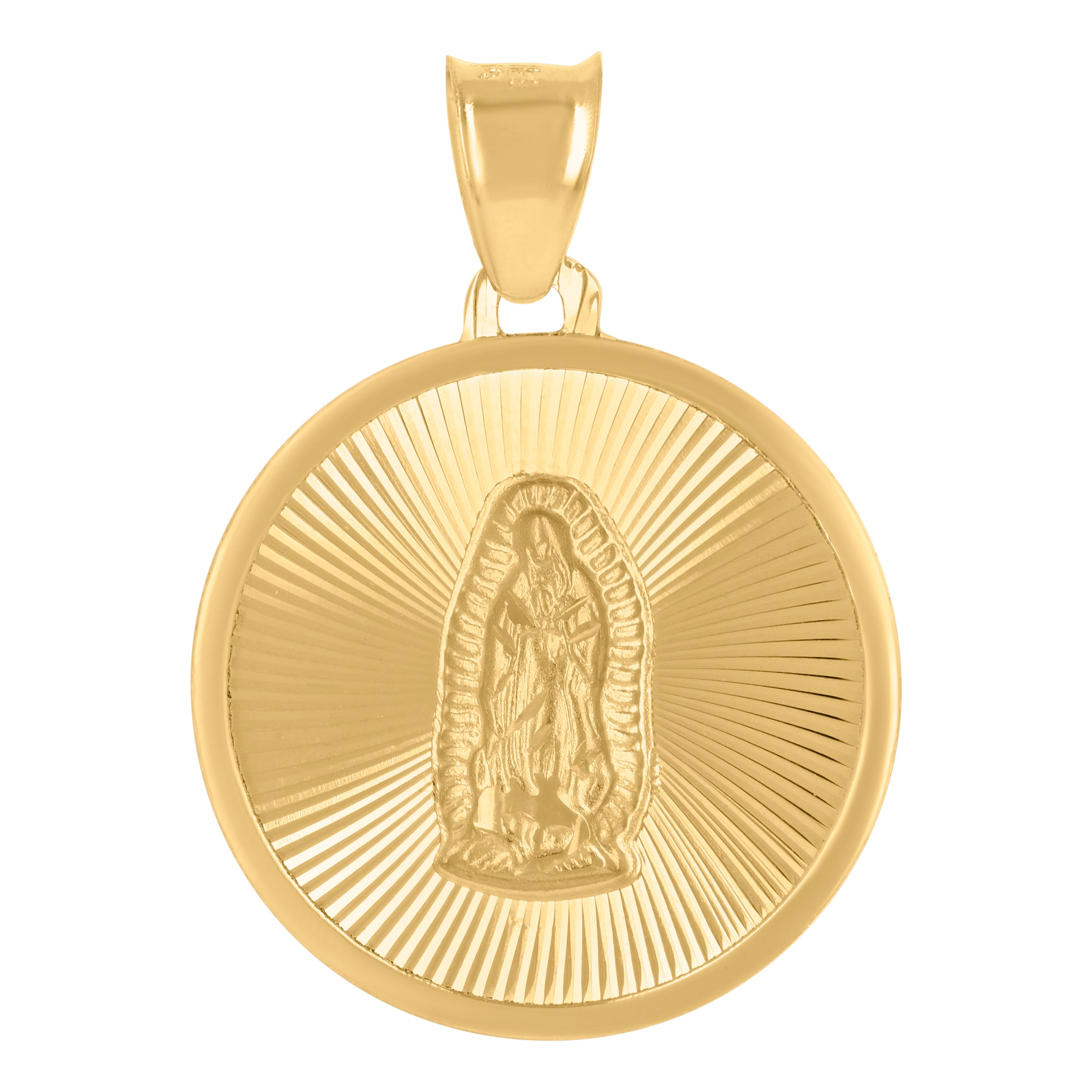 14Kt Yellow Gold Unisex Medallion Guadalupe/Mother Marry Religious Charm Pendant