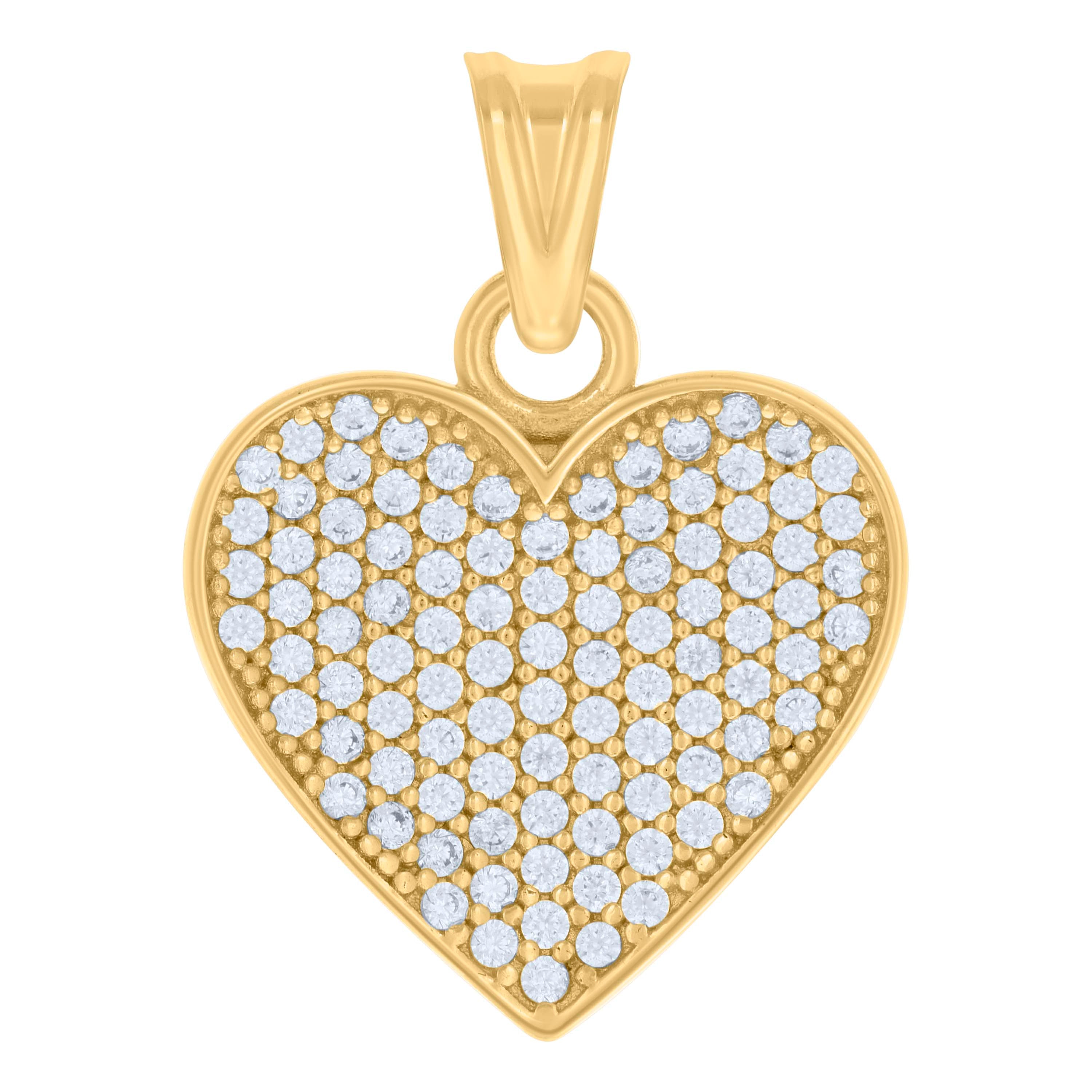 14kt Yellow Gold Women Cubic-Zirconia Heart Charm Pendant