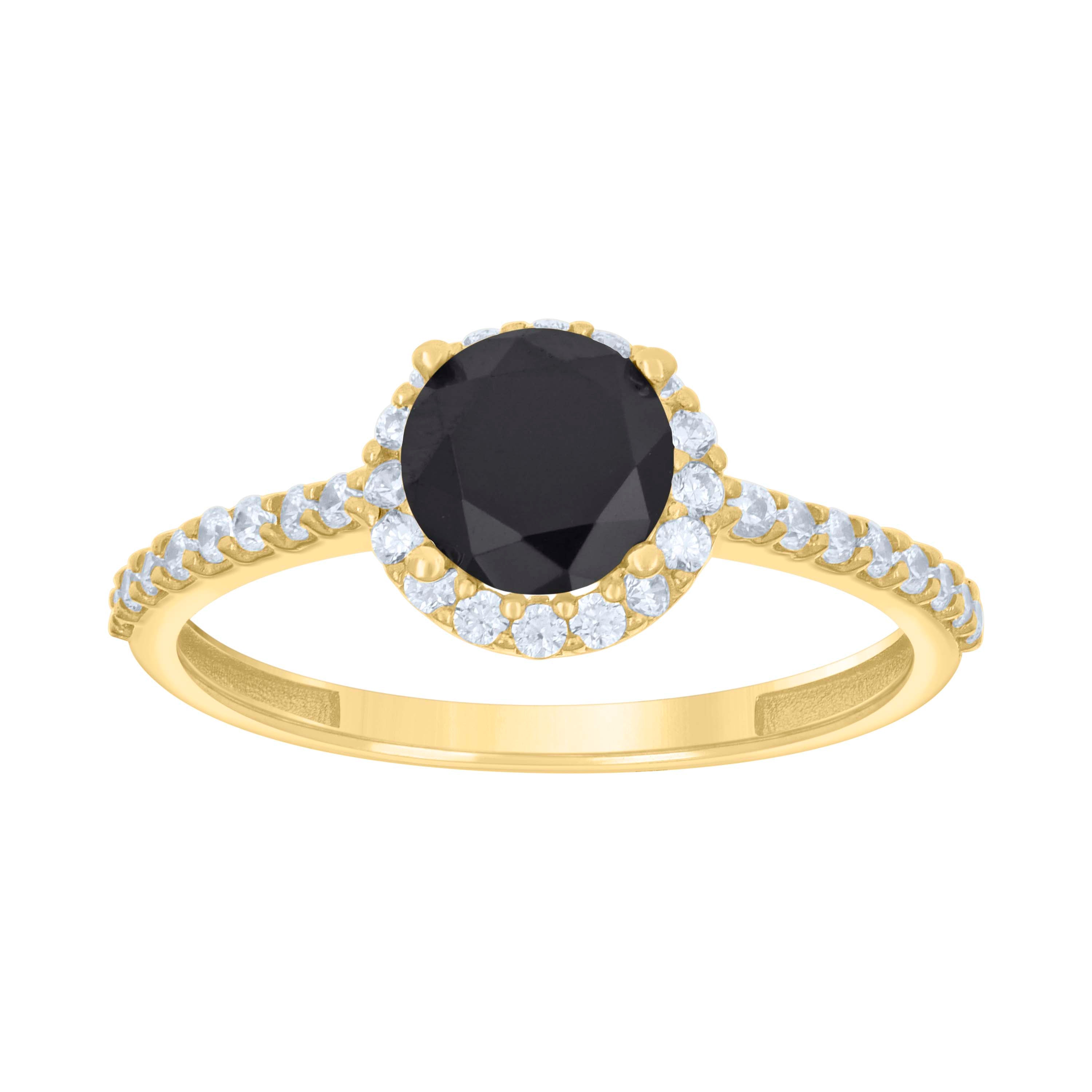 14kt Yellow Gold Womens Black White Cubic-Zirconia Halo Fashion Ring