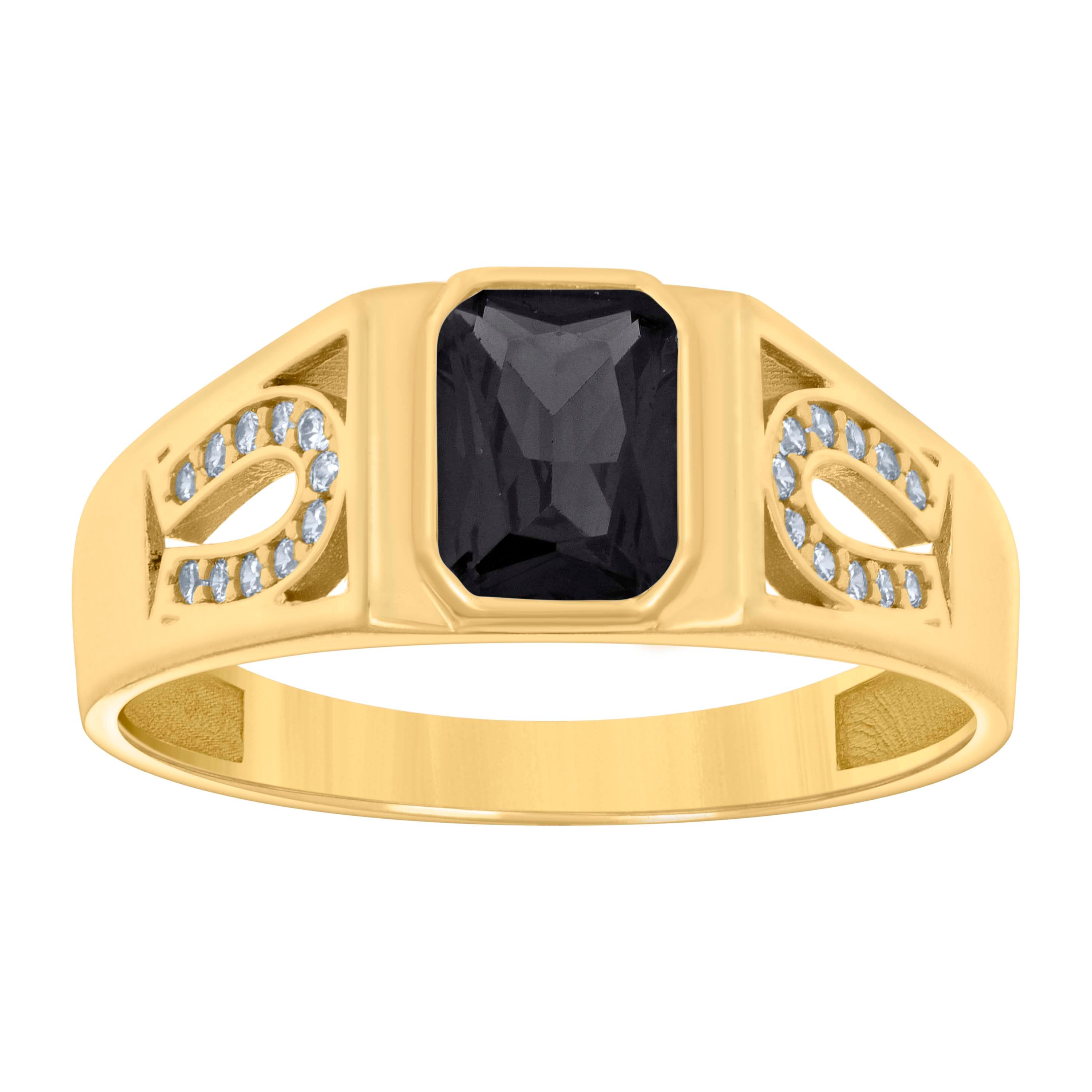 14kt Yellow Gold Womens Black White Emerald Round Cubic-Zirconia Horseshoe Side Good Luck Ring