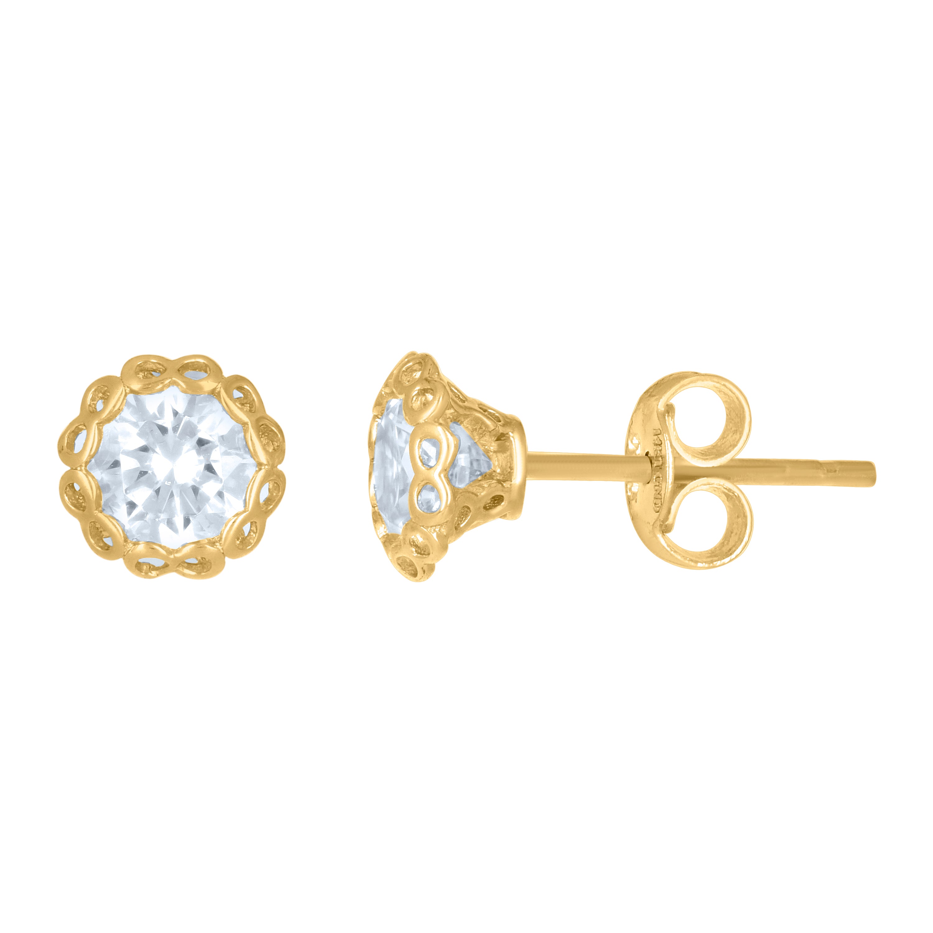 14Kt Yellow Gold Womens Cubic-Zirconia 6mm Flower Stud Earrings