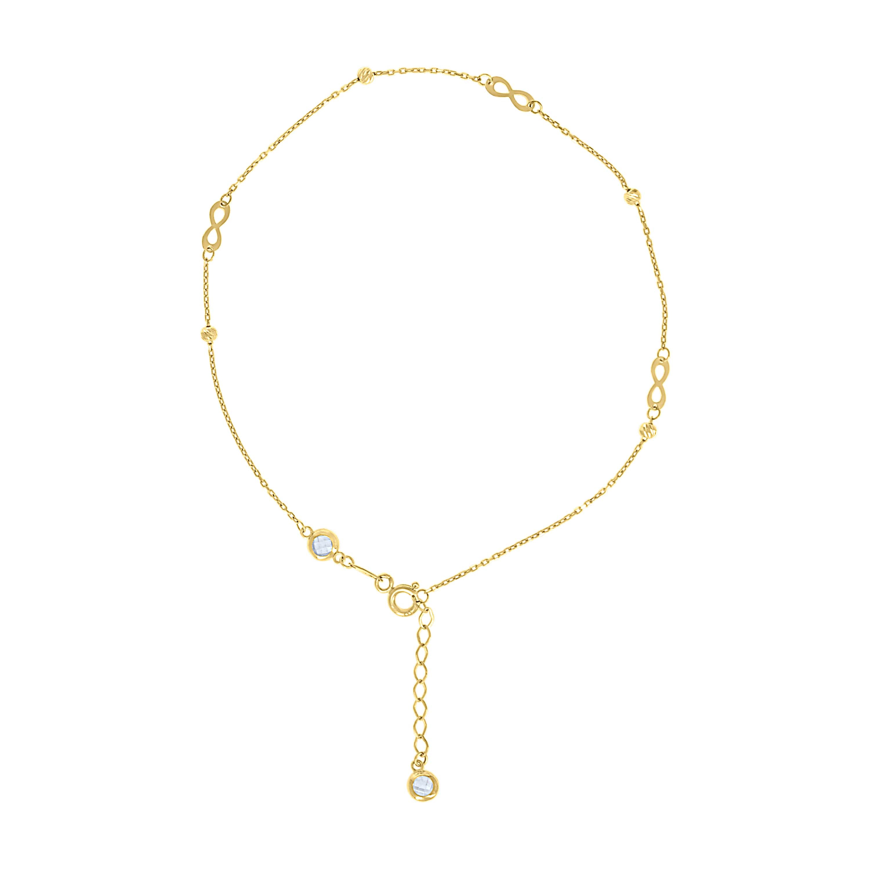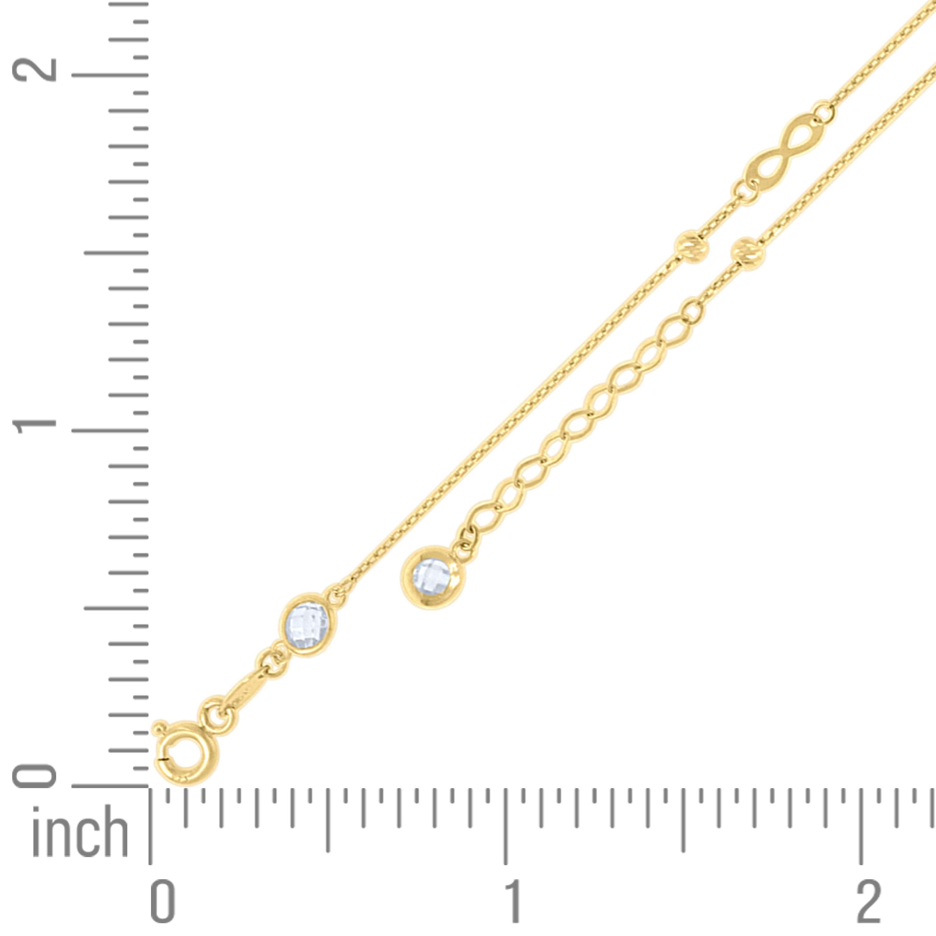 14kt Yellow Gold Womens Cubic-Zirconia Beaded Infinity Link Anklet Size 10 Inches
