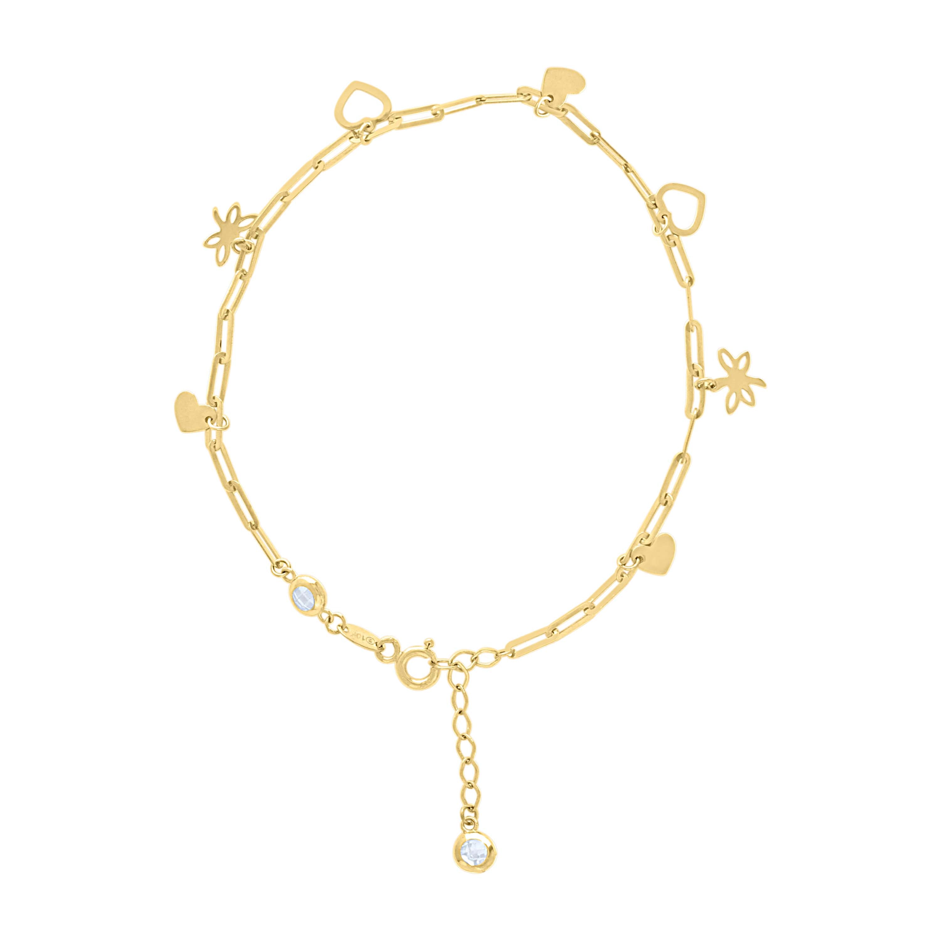 14kt Yellow Gold Womens Cubic-Zirconia Butterfly Heart Charms Bracelet Size 8 Inches