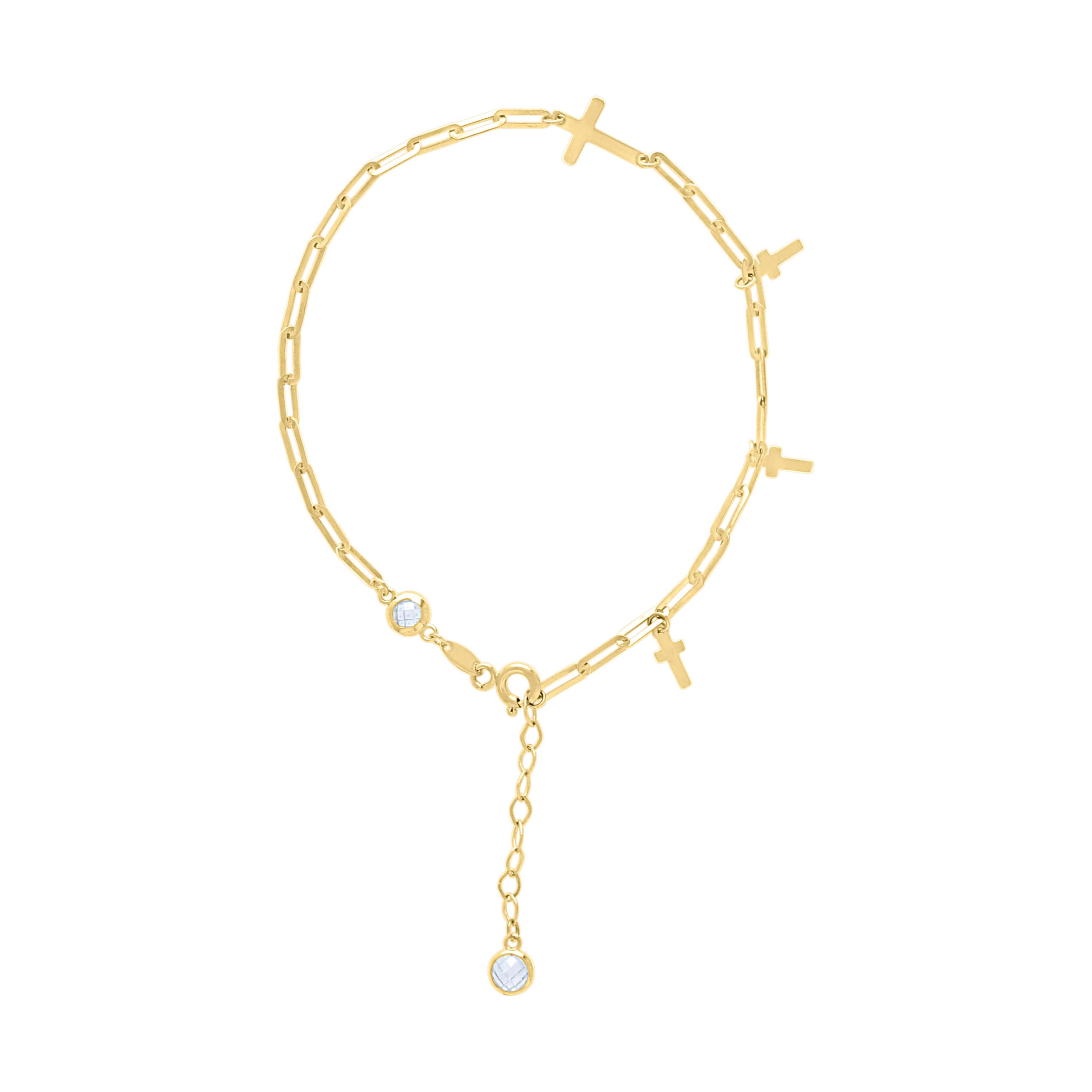 14kt Yellow Gold Womens Cubic-Zirconia Cross Charms Bracelet Size 8 Inches