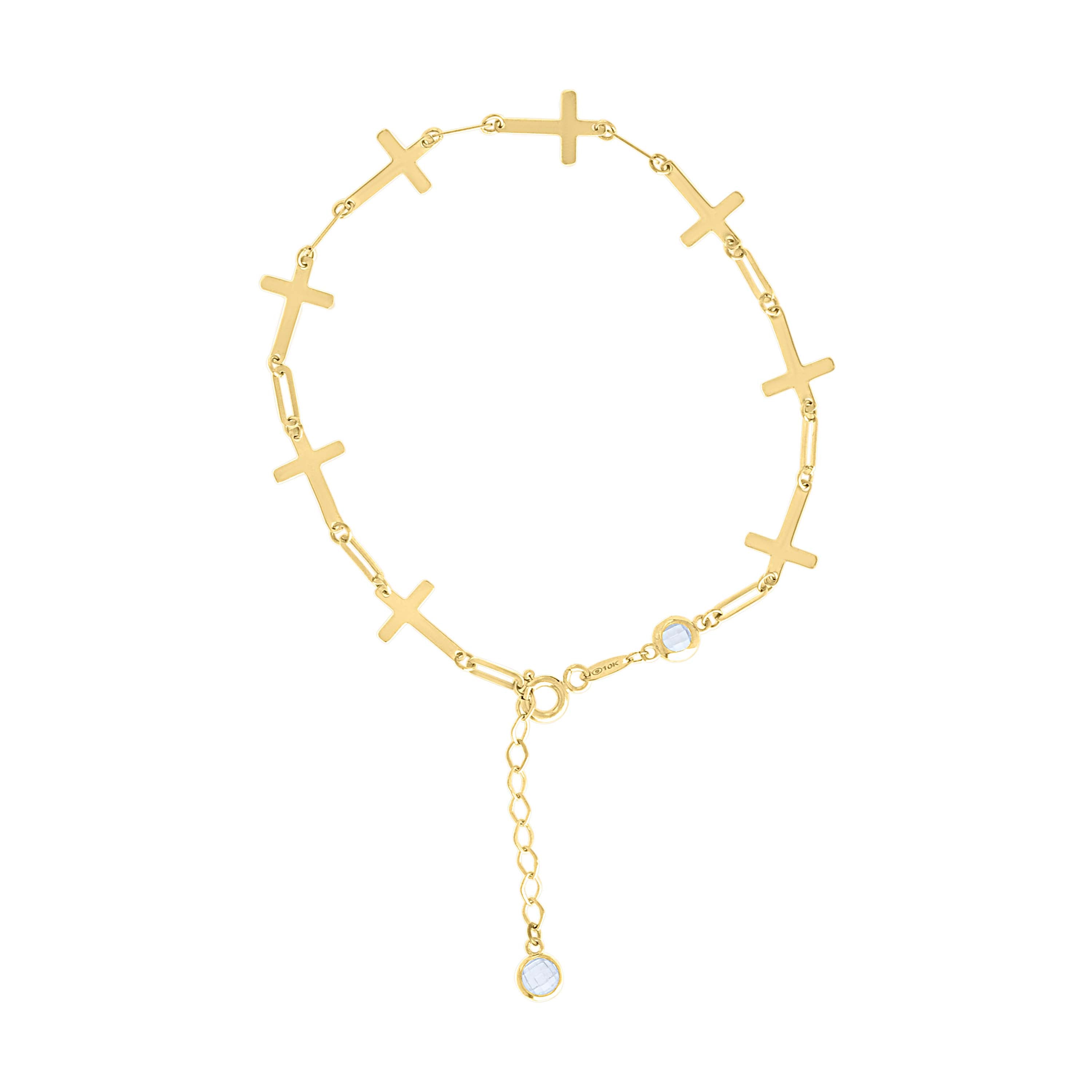 14kt Yellow Gold Womens Cubic-Zirconia Cross Link Bracelet Size 8 Inches