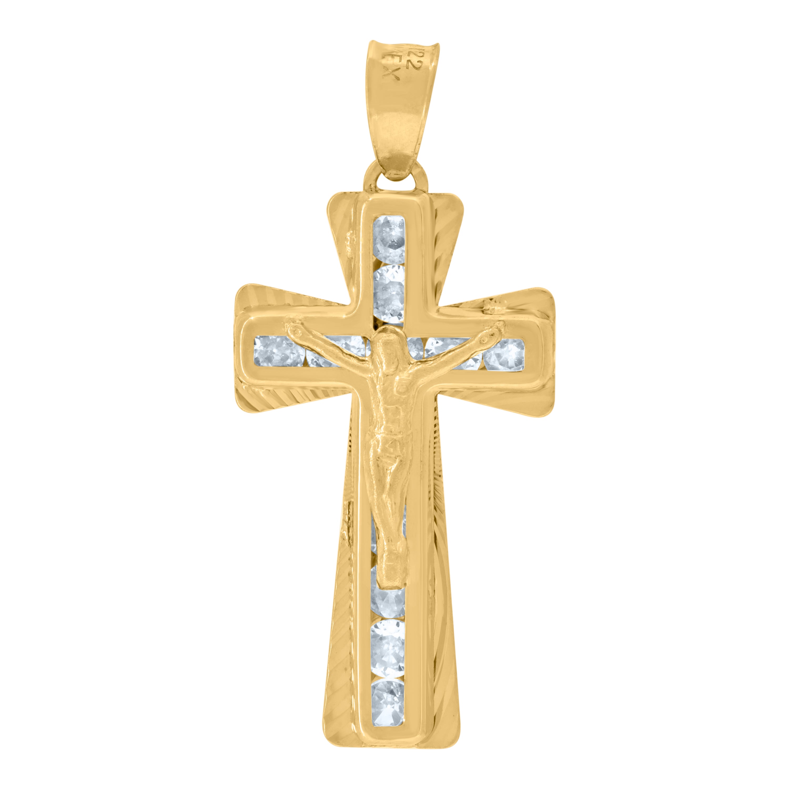 14Kt Yellow Gold Womens Cubic Zirconia Crucifix Cross Religious Charm Pendant
