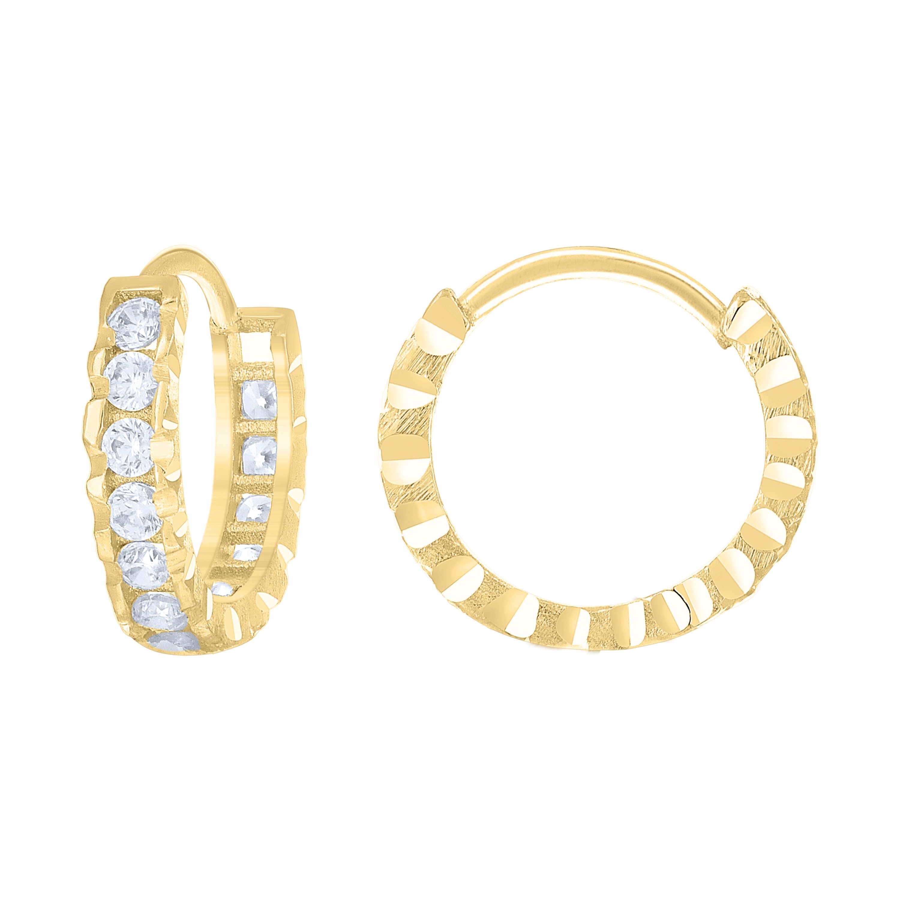 Elevate your style with these exquisite 14kt Yellow Gold Women's Cubic-Zirconia Diamond-Cut Fashion Hoop Earrings. Designed with a sophisticated diamond-cut finish, these lightweight hoops weigh just 1.1 grams, making them perfect for all-day wear. The endless closure ensures a secure fit, while the 10.7MM height and 11.1MM width offer a timeless silhouette. The channel-set, round white cubic zirconia adds a touch of sparkle, making these earrings a versatile accessory for any occasion. Indulge in the elegance and glamour of these stunning hoops.