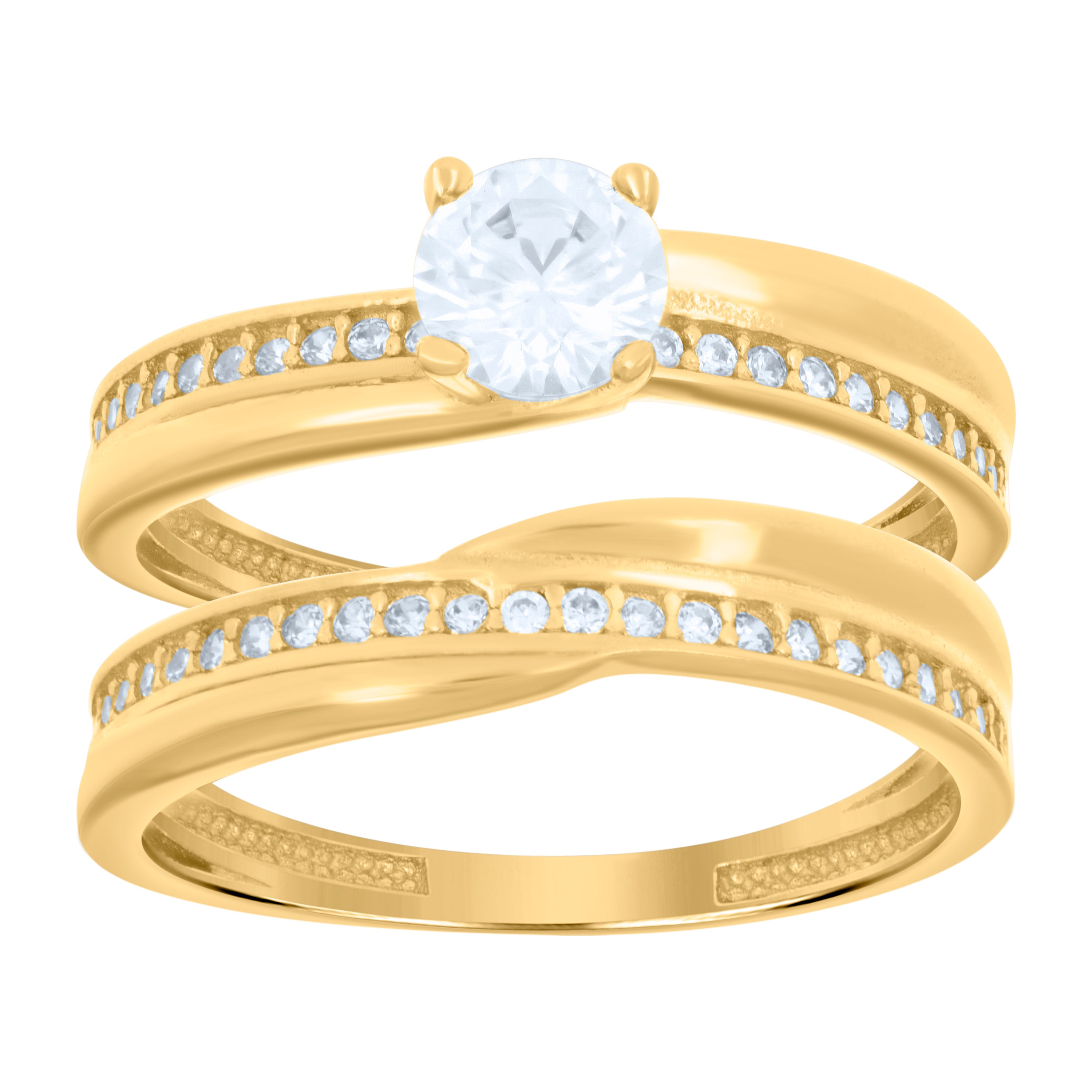 14kt Yellow Gold Womens Cubic-Zirconia Duo Bridal Ring Set