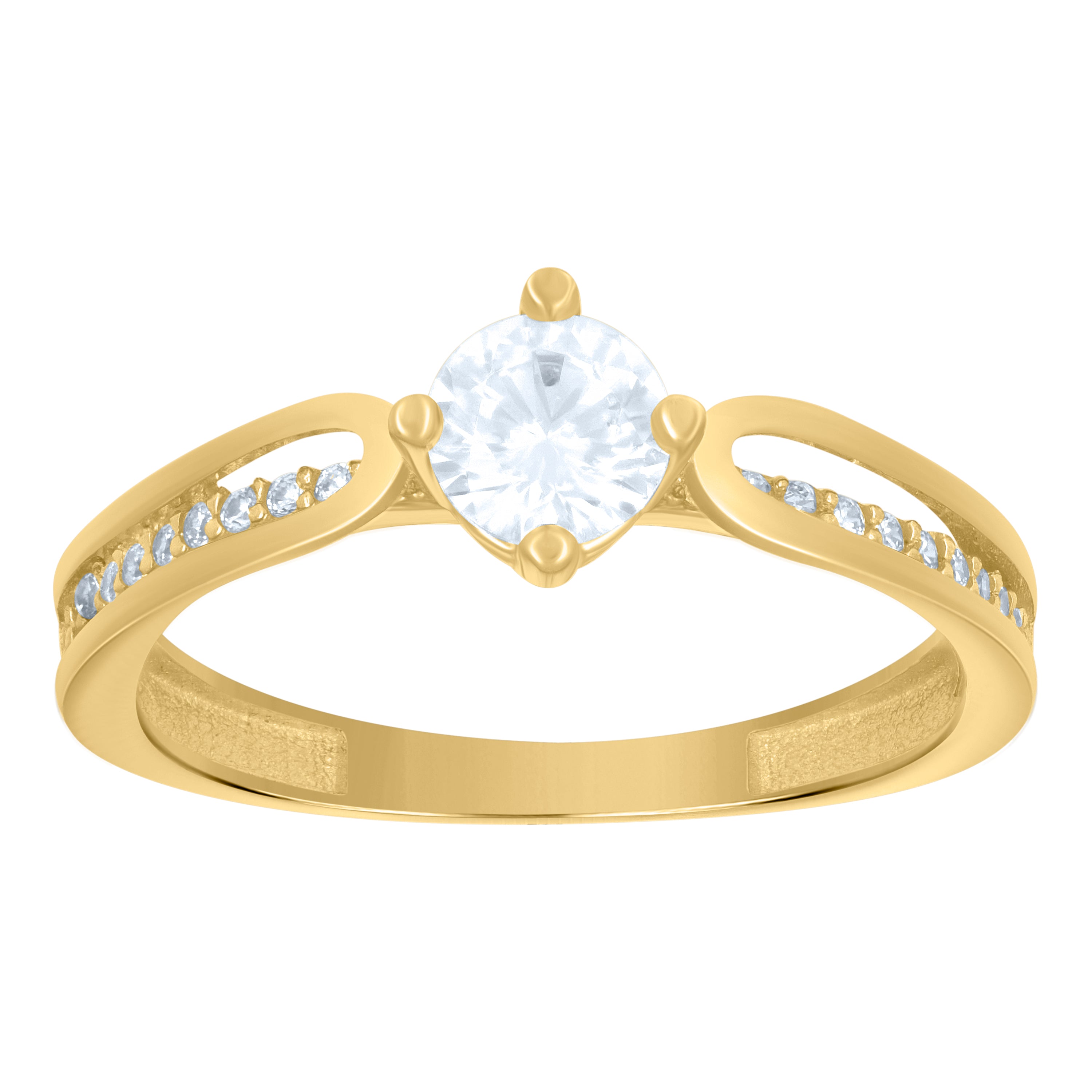 Illuminate your love story with this exquisite 14kt Yellow Gold Women's Engagement Ring. Featuring a dazzling round white cubic zirconia centerpiece, expertly set in a timeless prong setting, this ring exudes elegance and sophistication. With a polished finish, its sleek 6.3MM height and 3.1MM width gracefully hug the finger, offering a perfect blend of comfort and style. Weighing a delicate 2.3 grams, this radiant piece is an eternal testament to your everlasting commitment.
