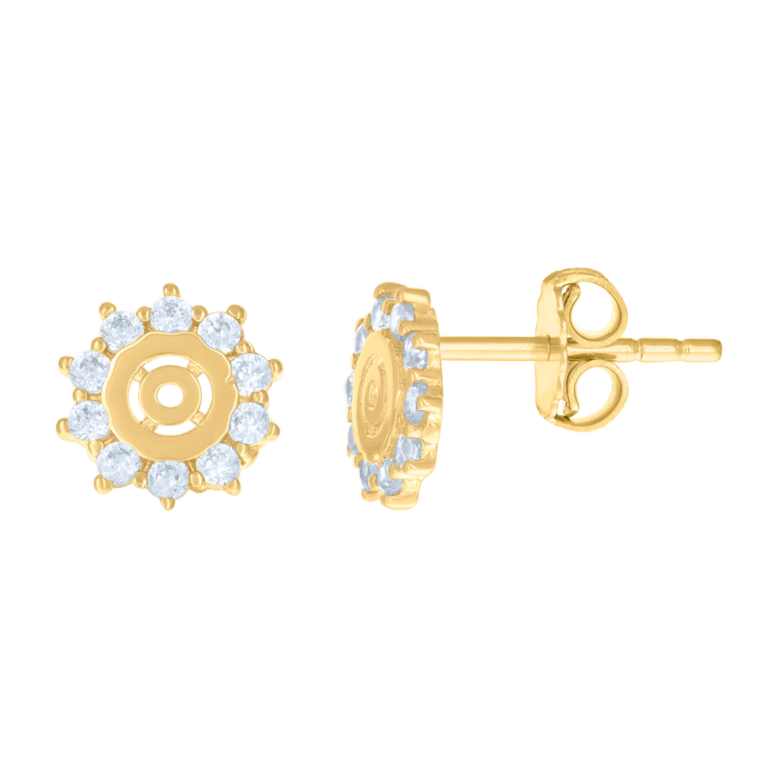 14kt Yellow Gold Womens Cubic-Zirconia Flower Fashion Stud Earrings
