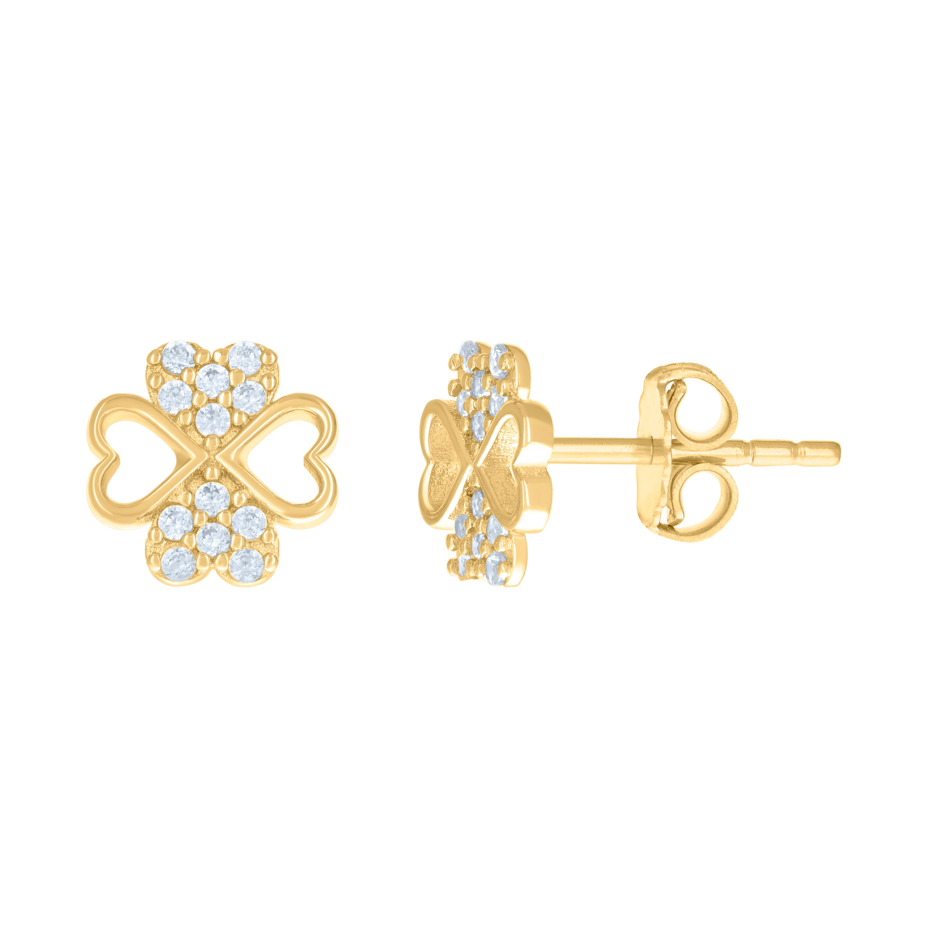 Elevate your elegance with these exquisite 14kt Yellow Gold Cubic-Zirconia Flower Heart Stud Earrings. Weighing a dainty 0.9 grams, their polished finish gleams with sophistication. Measuring 7.7MM in both height and width, these earrings feature dazzling round white cubic-zirconia stones set in secure prongs. With a convenient push back closure, they promise comfort and style for any occasion.