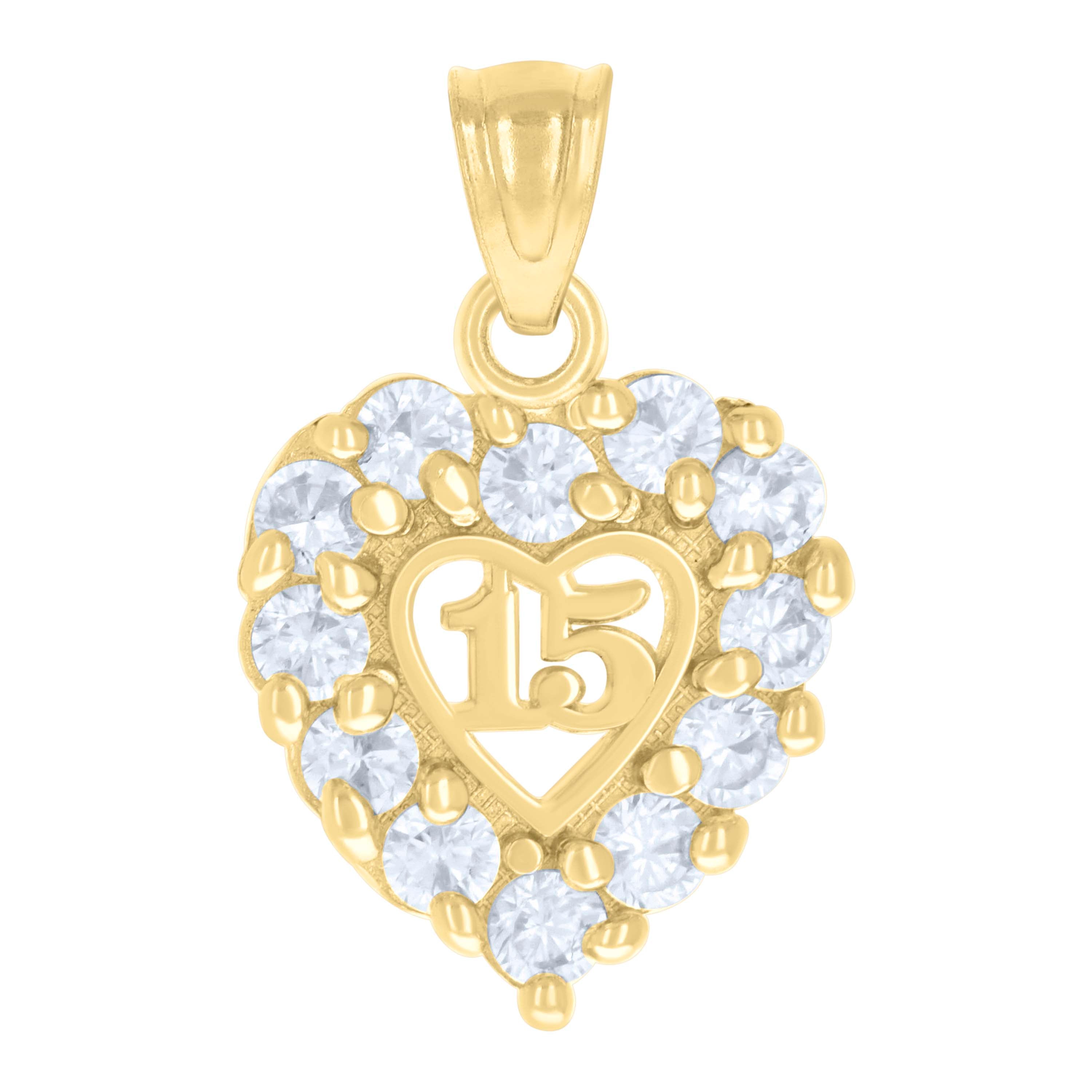 14kt Yellow Gold Womens Cubic-Zirconia Heart 15 Quinceanera Charm Pendant