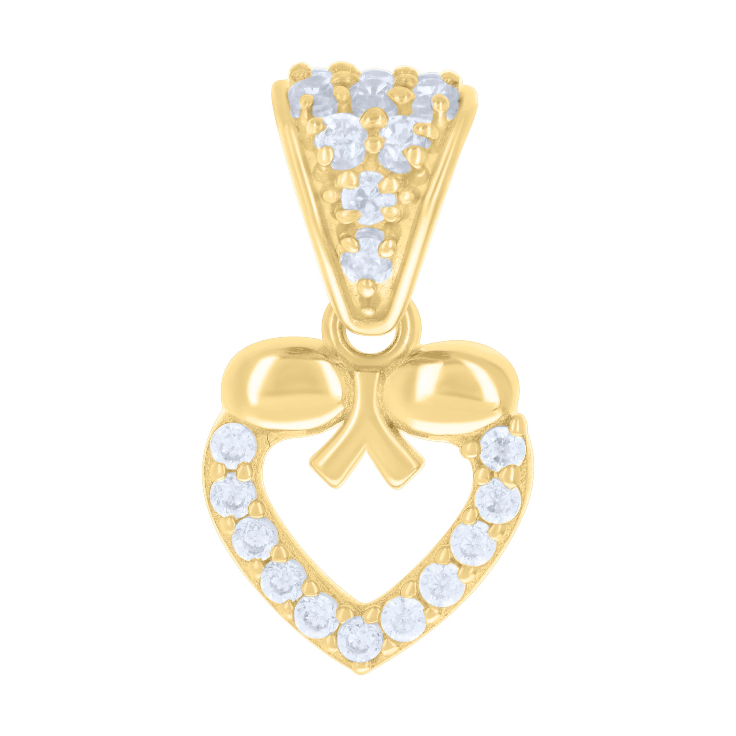Embrace elegance with this 14kt Yellow Gold Women's Cubic-Zirconia Heart Charm Pendant, weighing a delicate 0.8 grams. The polished finish enhances its glow, while the single bail ensures it hangs gracefully. Measuring 14.8mm in height and 8.5mm in width, the pendant features a stunning prong-set round white cubic-zirconia, adding a touch of sparkle to your ensemble. Perfect for any occasion, this pendant is a timeless piece that expresses sophistication and charm.