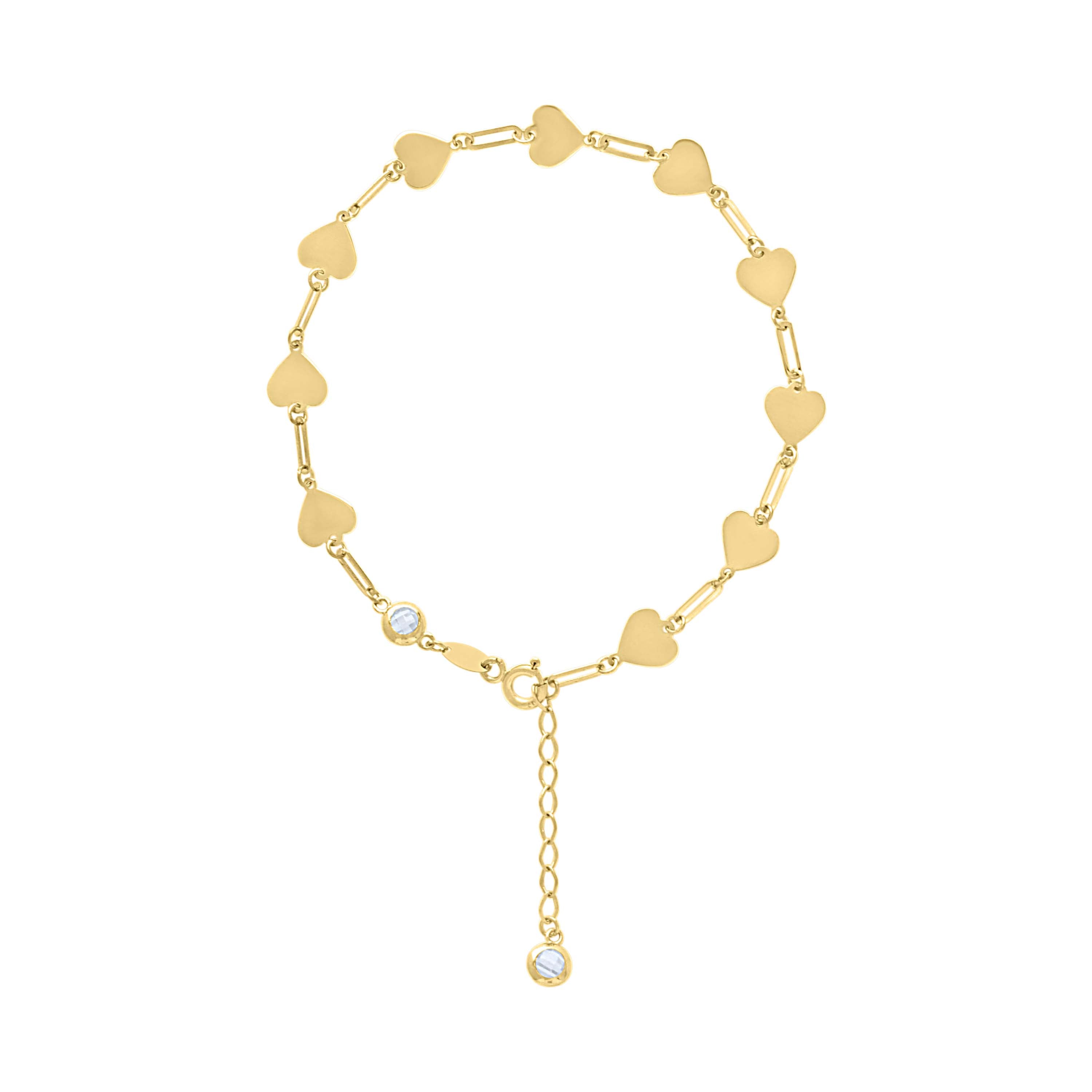 14kt Yellow Gold Womens Cubic-Zirconia Heart Link Bracelet Size 8 Inches