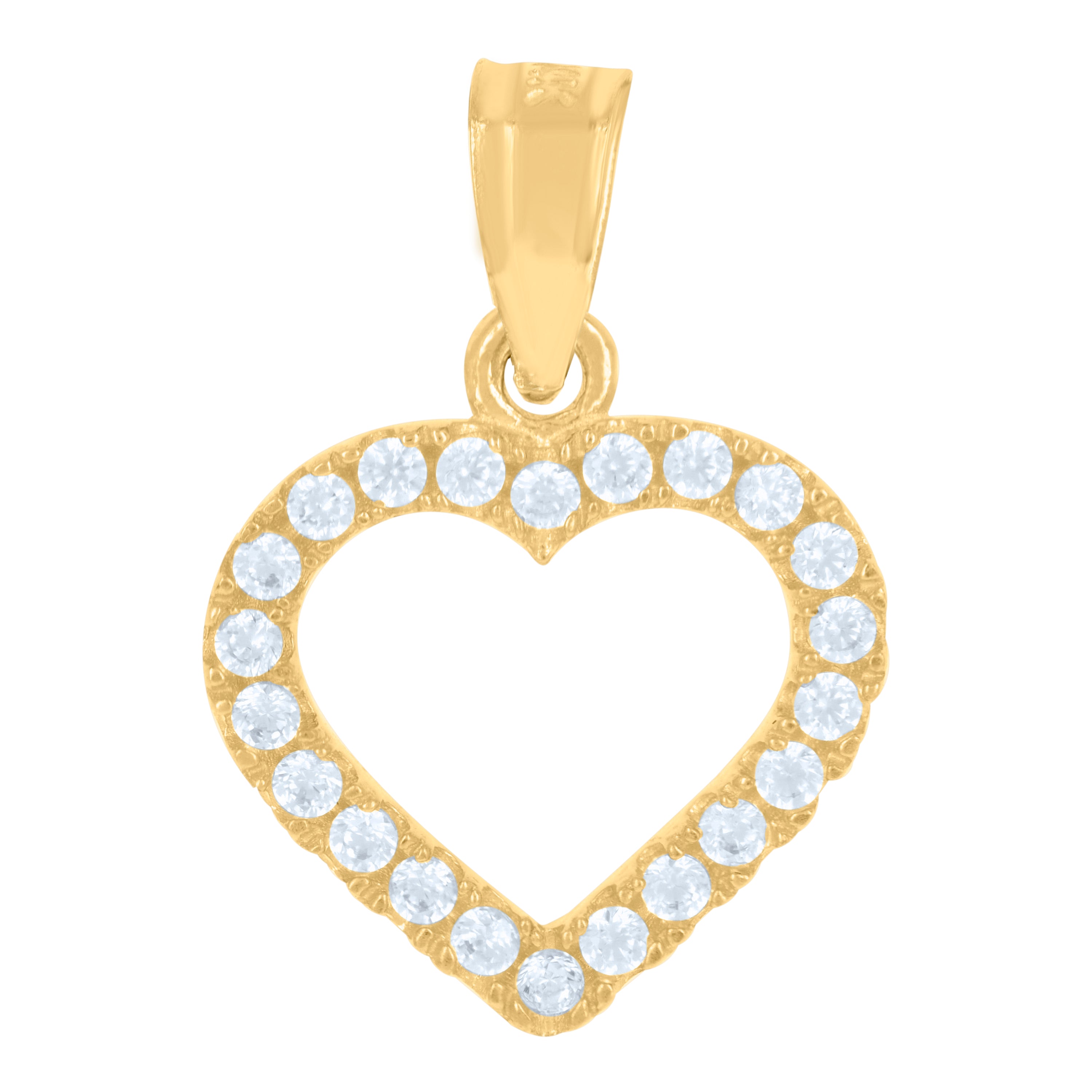 Embrace elegance with our 14Kt Yellow Gold Women's Heart Pendant Charm. This exquisite piece, weighing just 0.8 grams, features a polished finish that radiates a timeless shine. The heart-shaped charm, measuring 18MM in height and 12.2MM in width, is adorned with a dazzling round white cubic zirconia, securely set in a prong setting. Its single bail closure ensures it hangs beautifully on any chain, making this pendant a perfect gift or personal treasure.