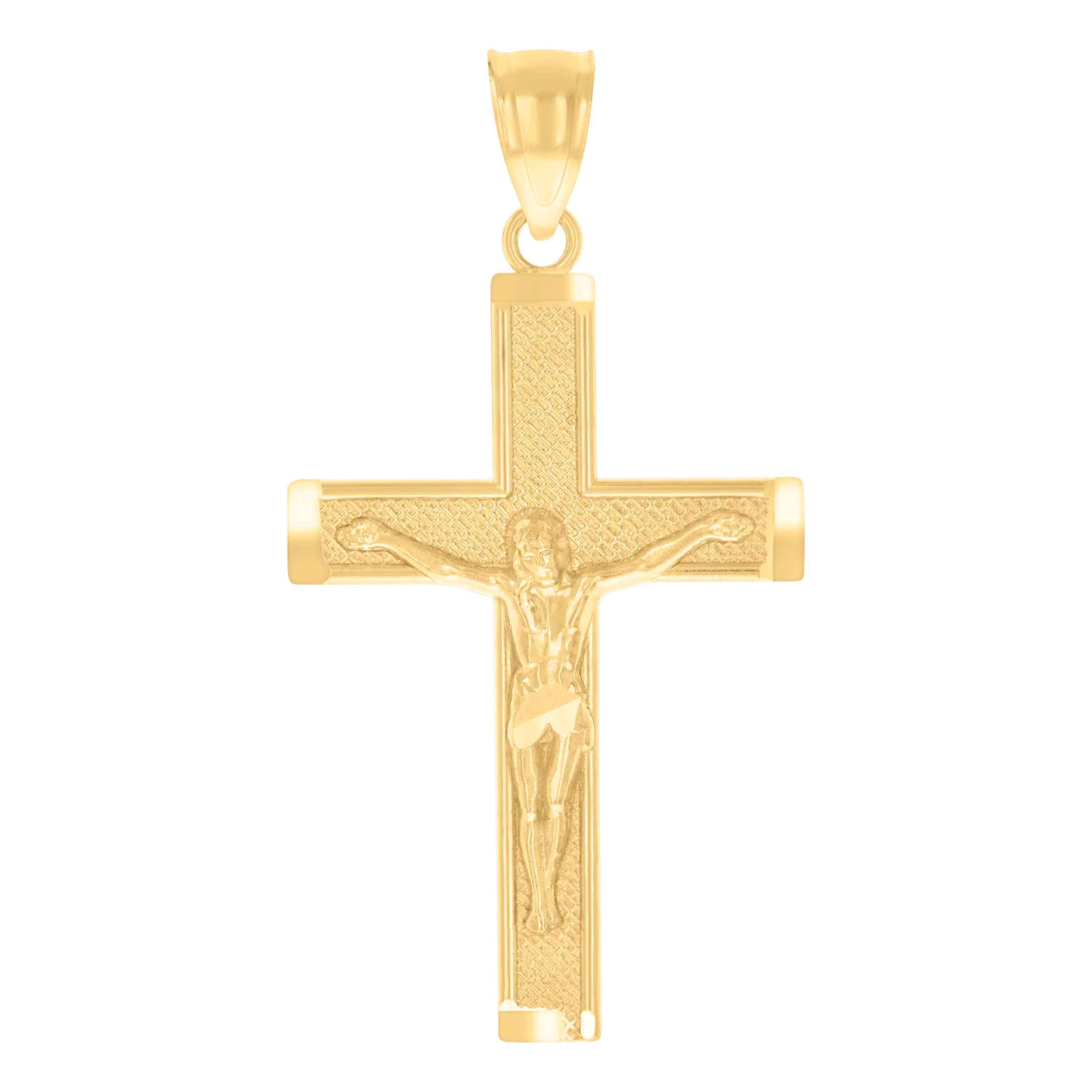 14Kt Yellow Gold Womens Diamond-Cut Cross Crucifix Ht:34.7Mm Religious Pendant Charm