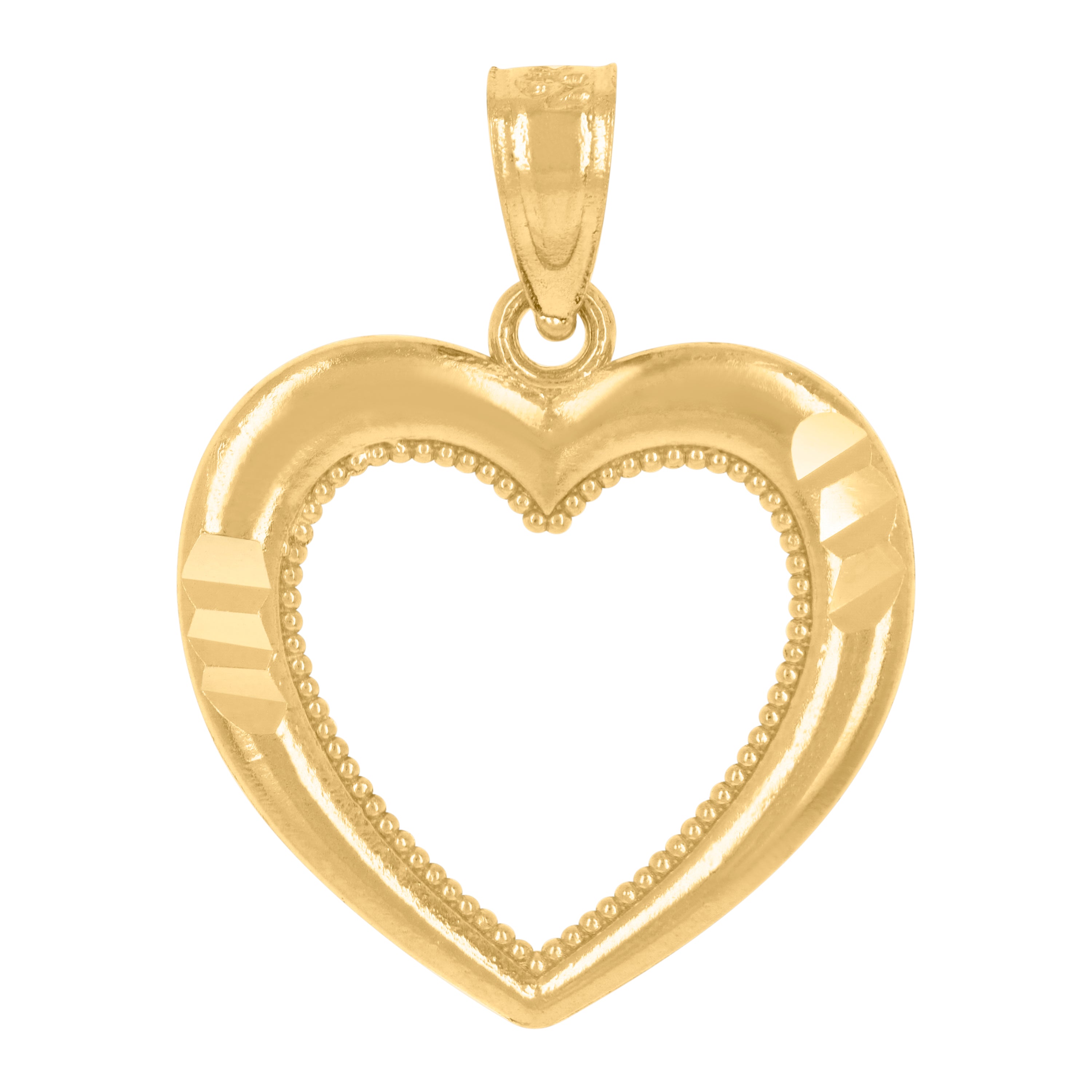 14Kt Yellow Gold Womens Diamond-Cut Heart Ht:19.8Mm Pendant Charm