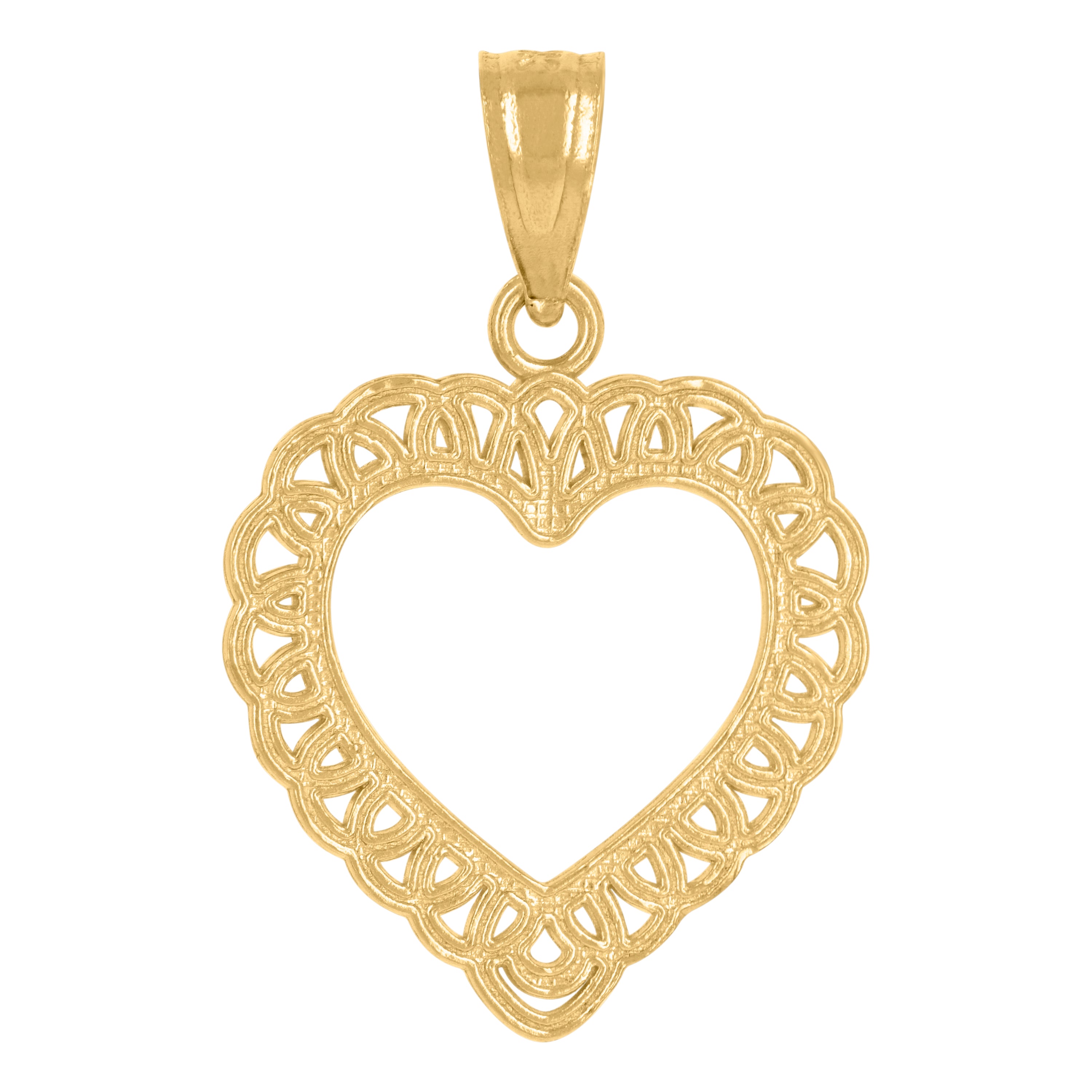 14Kt Yellow Gold Womens Diamond-Cut Heart Ht:21.4Mm Pendant Charm