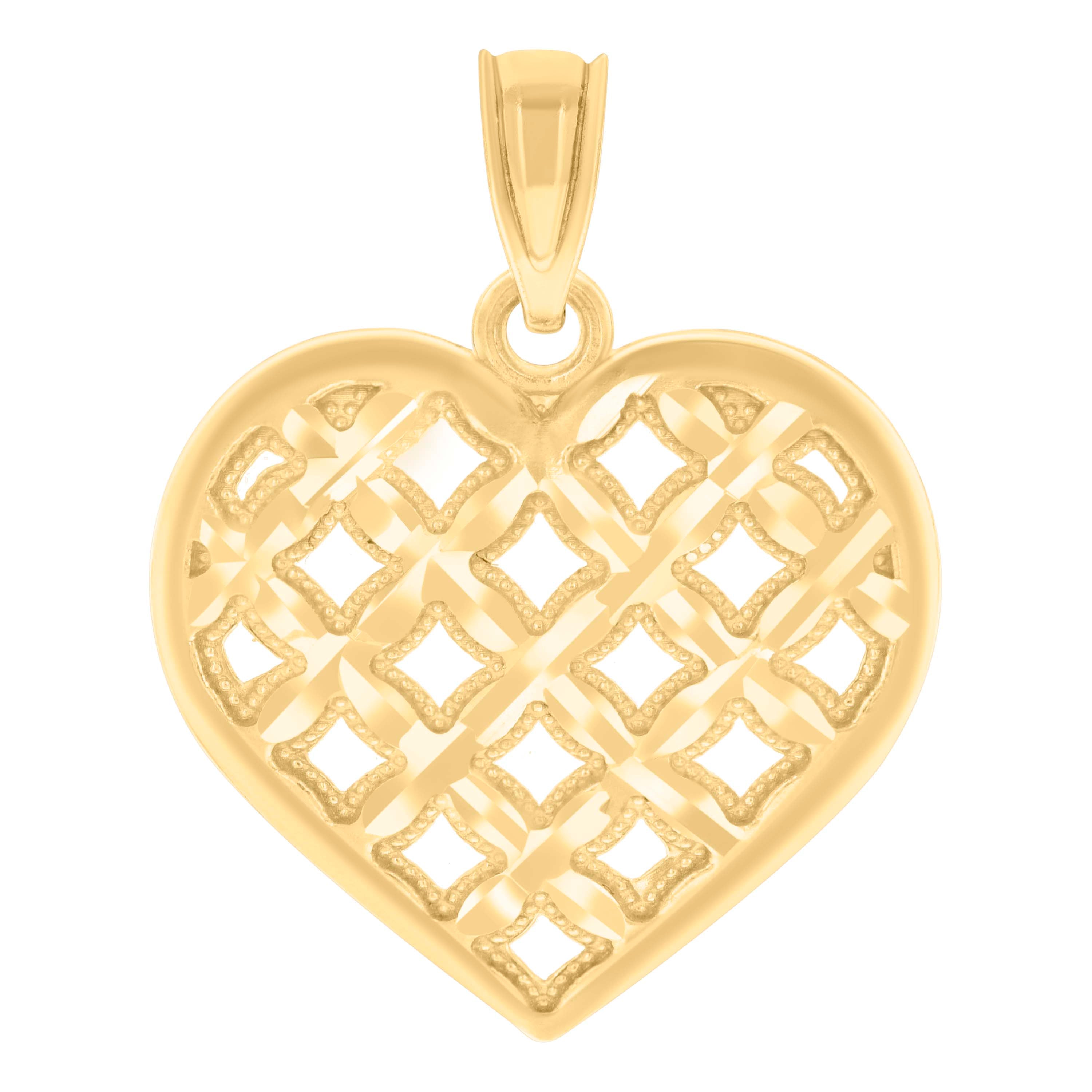 14Kt Yellow Gold Womens Diamond-Cut Heart Ht:21Mm Pendant Charm