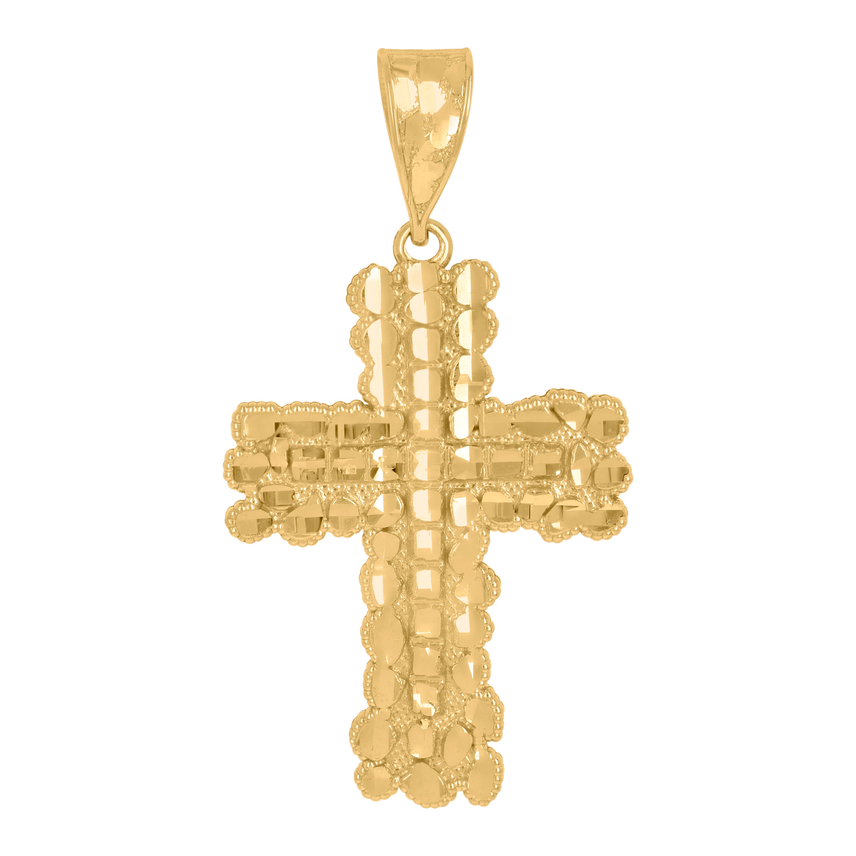 14Kt Yellow Gold Womens Diamond-Cut Nugget Cross Ht:16.4Mm Religious Pendant Charm