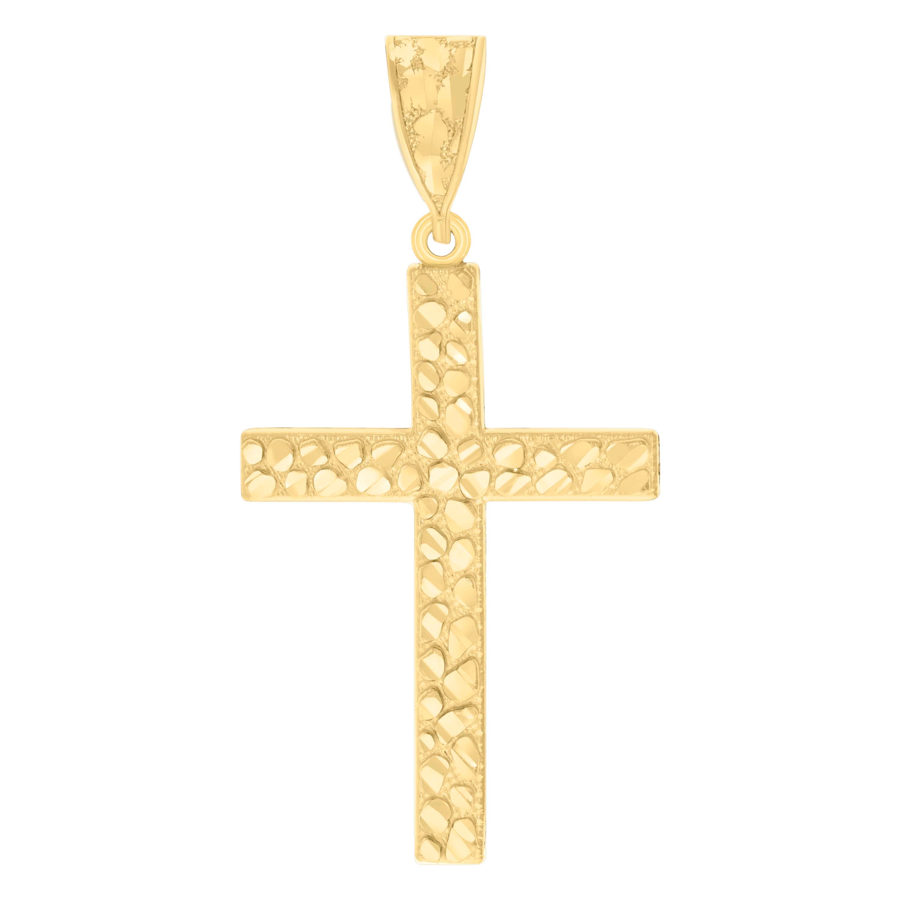 14Kt Yellow Gold Womens Diamond-Cut Nugget Cross Ht:53.5Mm Religious Pendant Charm
