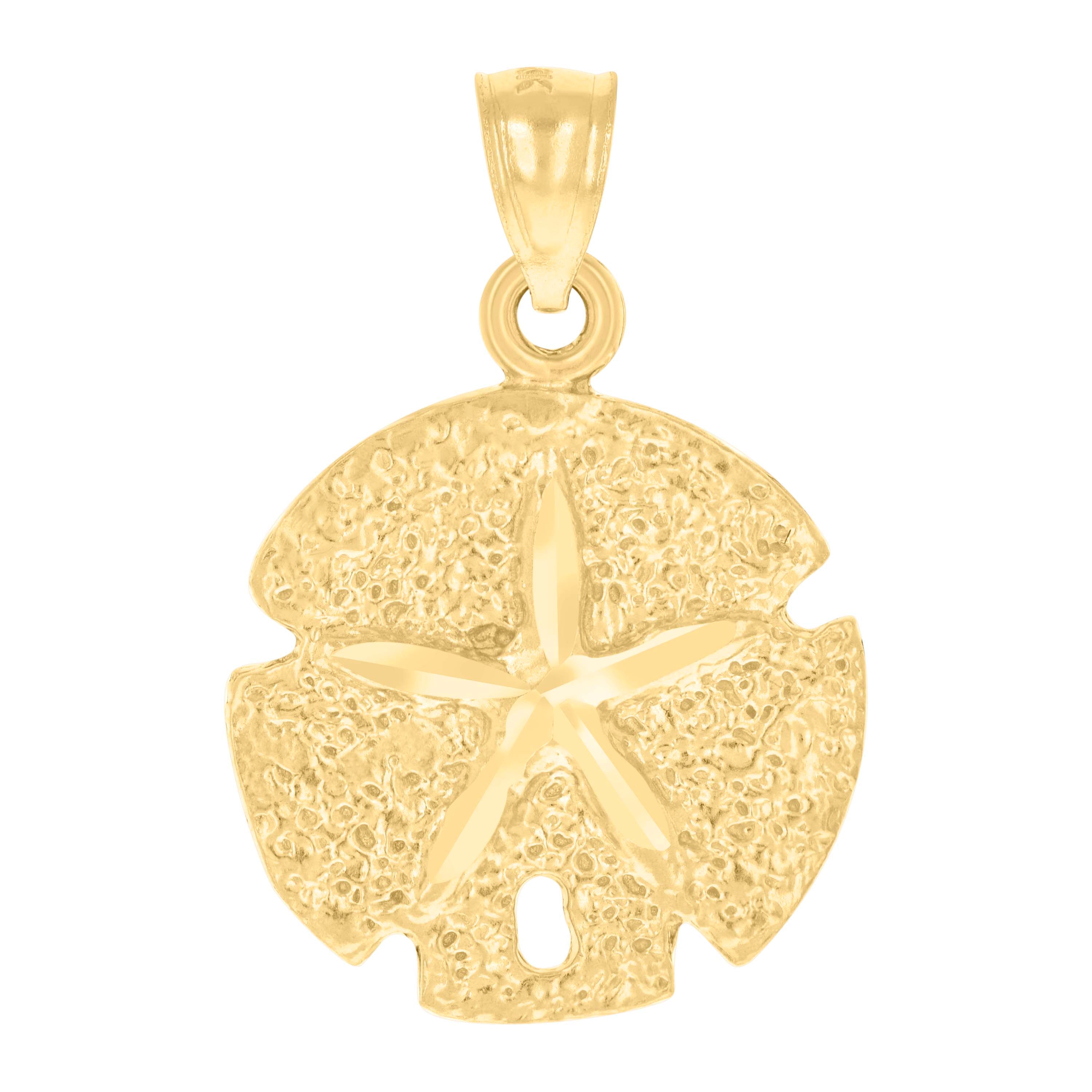 14Kt Yellow Gold Womens Diamond-Cut Sand Dollar Animal Ocean Pendant Charm