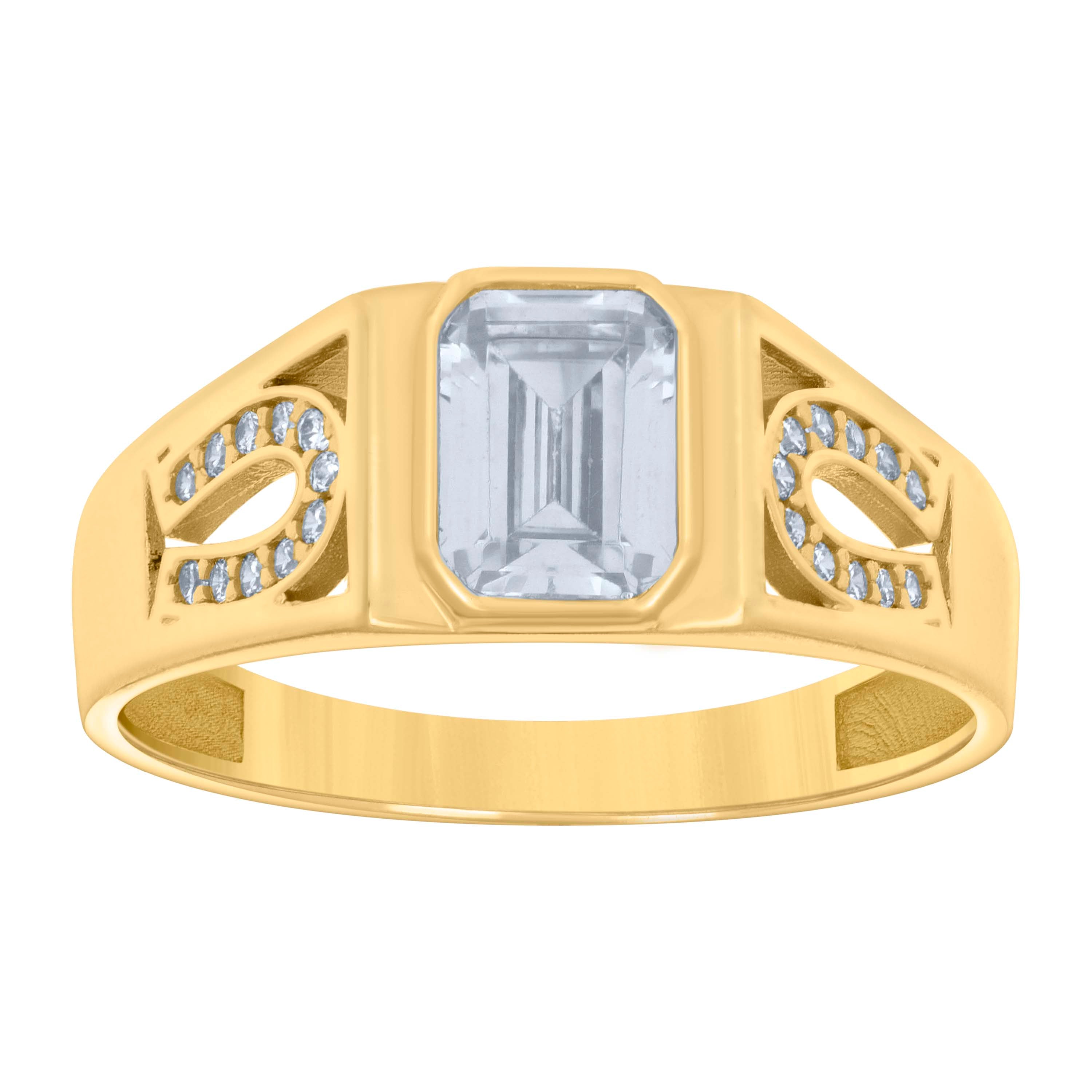 Elevate your elegance with this exquisite 14kt Yellow Gold Women's Horseshoe Good Luck Ring. Weighing 3.1 grams, this polished piece features a dazzling combination of round and emerald-cut white cubic zirconia, meticulously set in prong and bezel settings. With a striking height and width of 7.8MM, this ring is a harmonious blend of timeless design and modern sophistication, perfect for adding a touch of luxury to any ensemble.