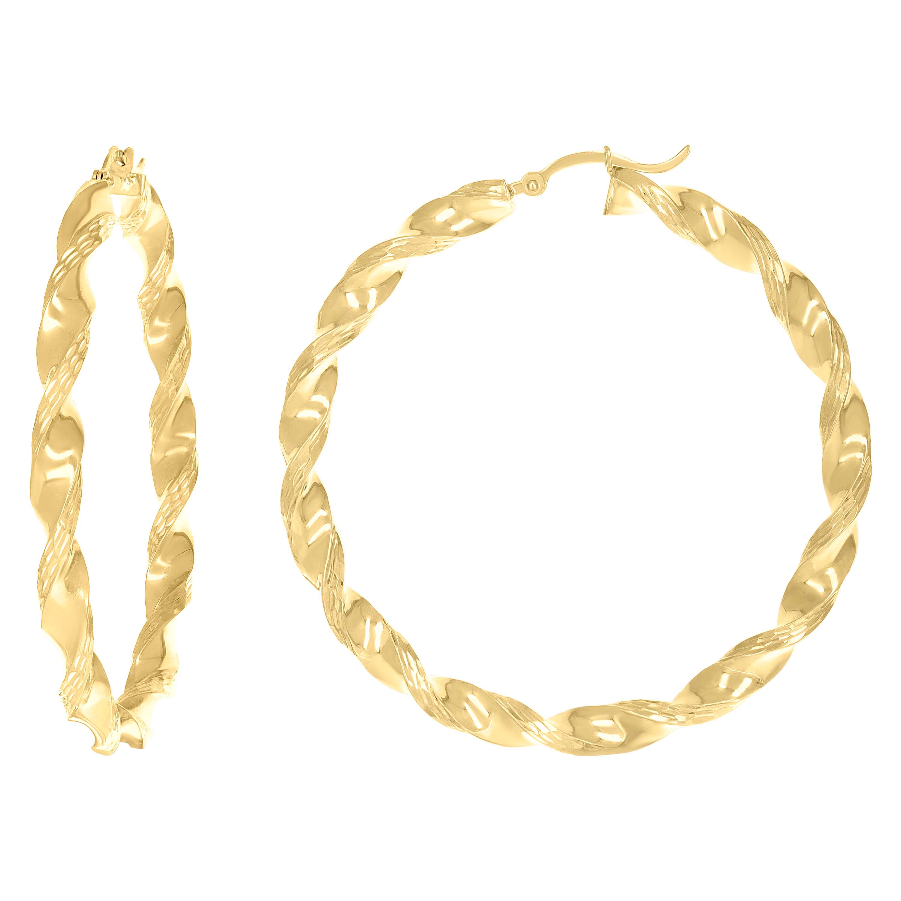 14kt Yellow Gold Womens Flat Twisted Tube Hoop Earrings