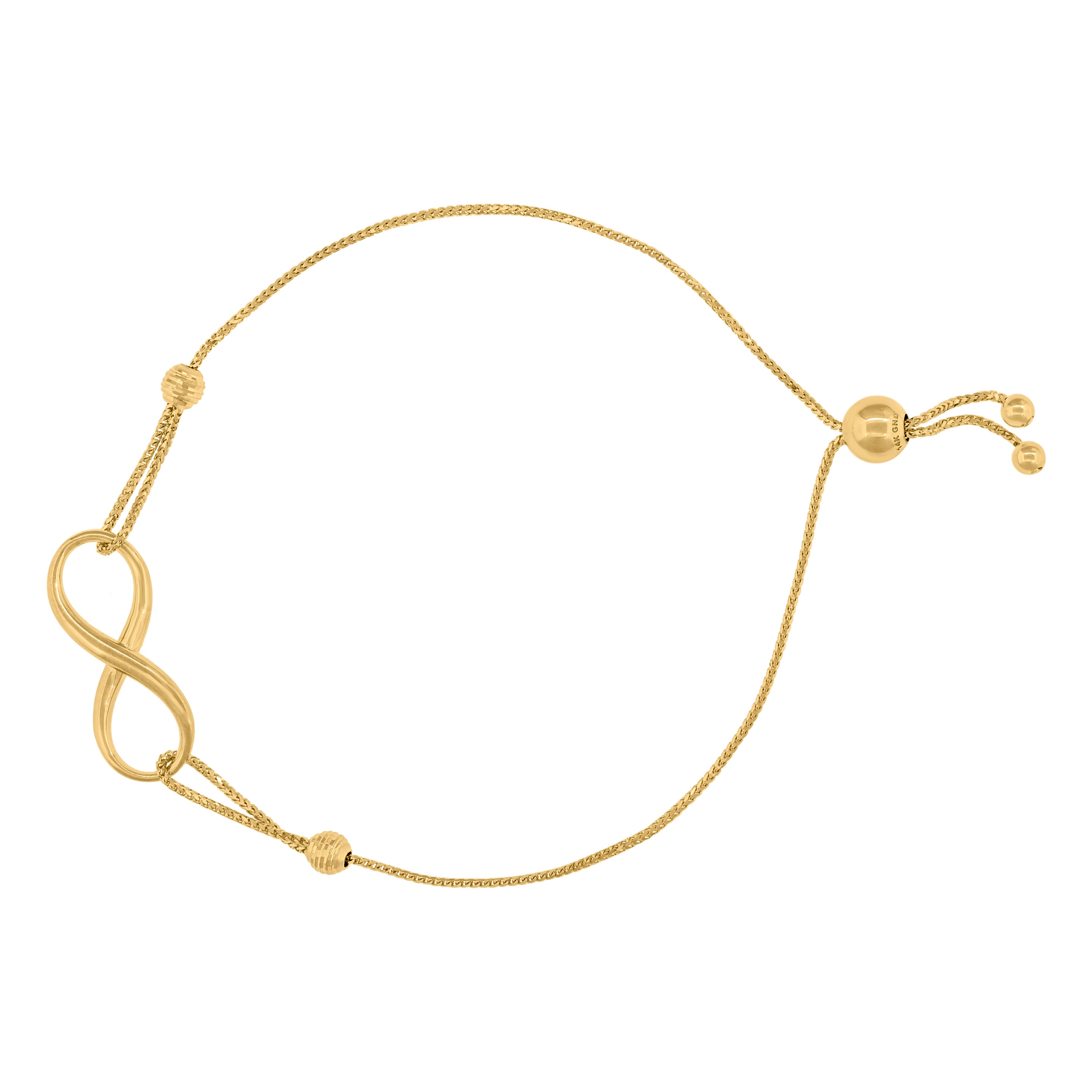 14Kt Yellow Gold Womens Heart & Infinity Charm Adjustable Bolo Bracelet Size 9 Inches