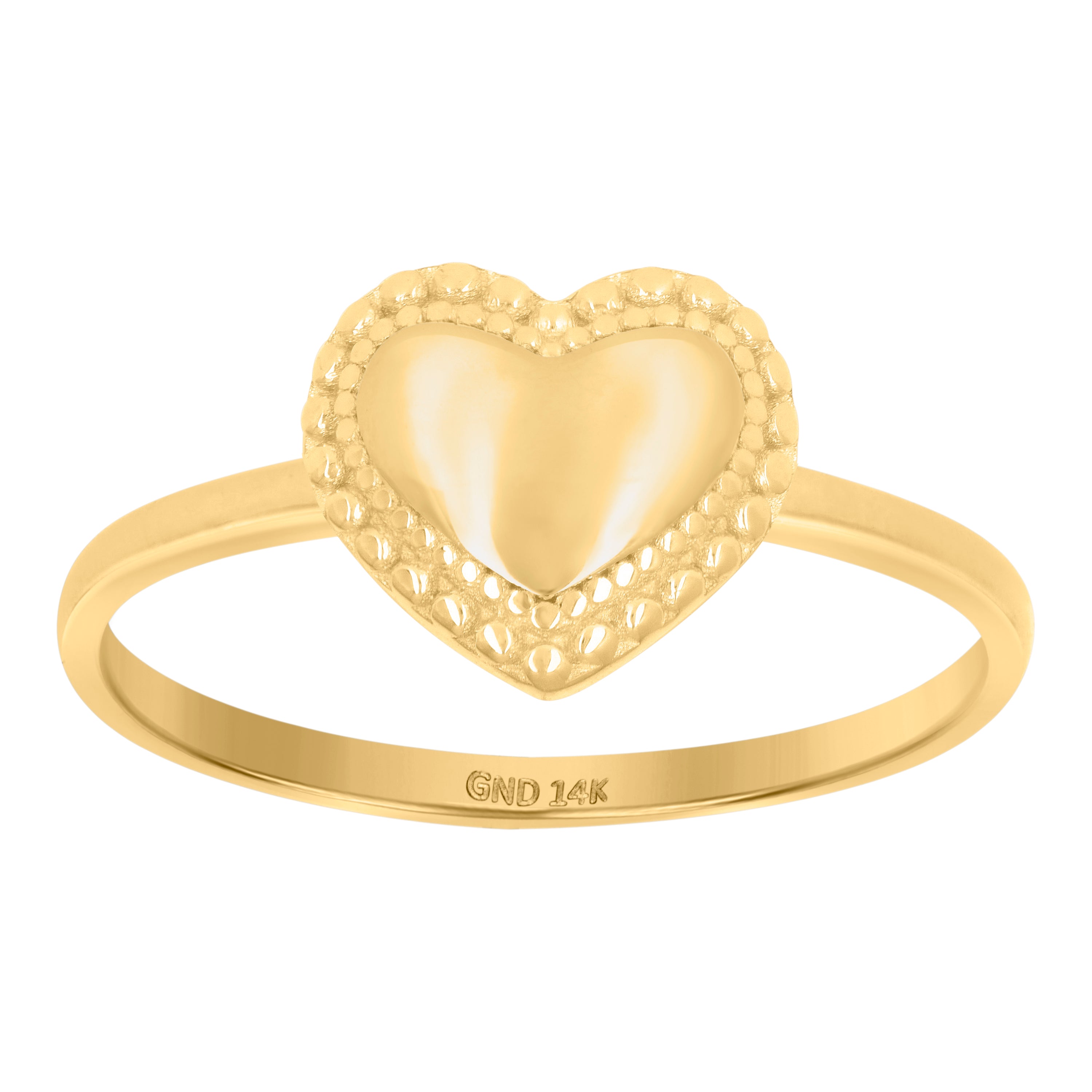 Adorn yourself with this exquisite 14kt Yellow Gold Women's Heart Ring, weighing a delicate 1.5 grams. Its polished finish exudes a timeless elegance, while the sleek 8.7MM height and 1.7MM width embody sophistication. Perfect for adding a touch of romance and elegance to any ensemble.