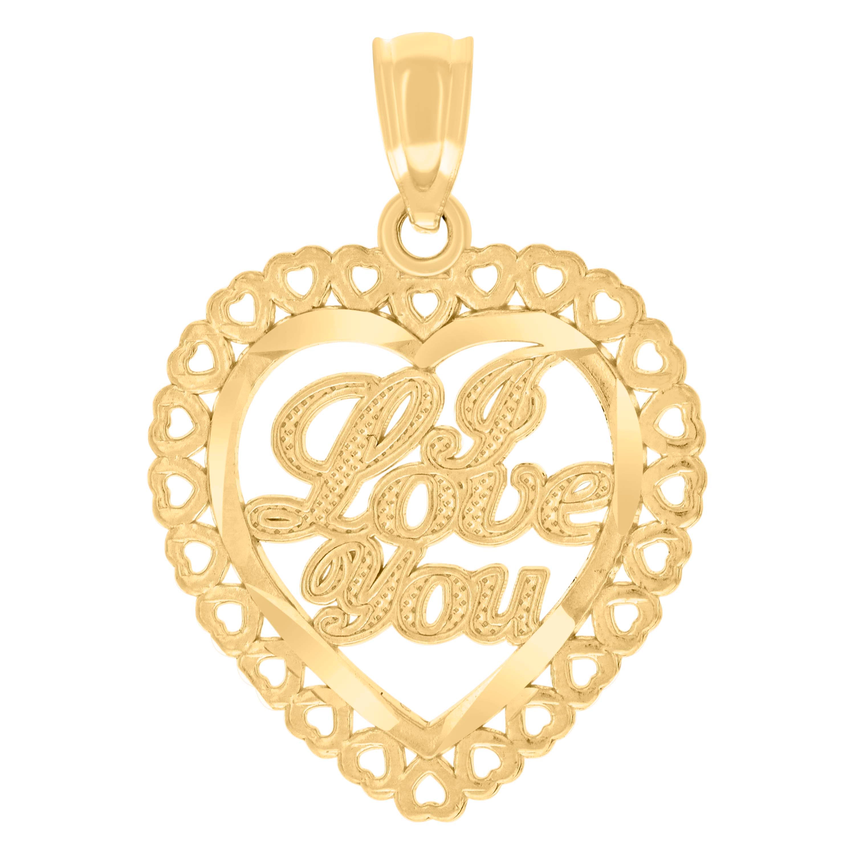 Express your love with this exquisite 14kt Yellow Gold "I Love You" Heart Charm Pendant. Weighing a delicate 1.1 grams, this diamond-cut beauty features a single bail closure, ensuring it sits perfectly on any chain. Measuring 22.6MM in height and 16.3MM in width, it's a subtle yet striking piece that speaks volumes. Ideal for everyday wear or special occasions, this charm captures the essence of elegance and affection in its purest form.