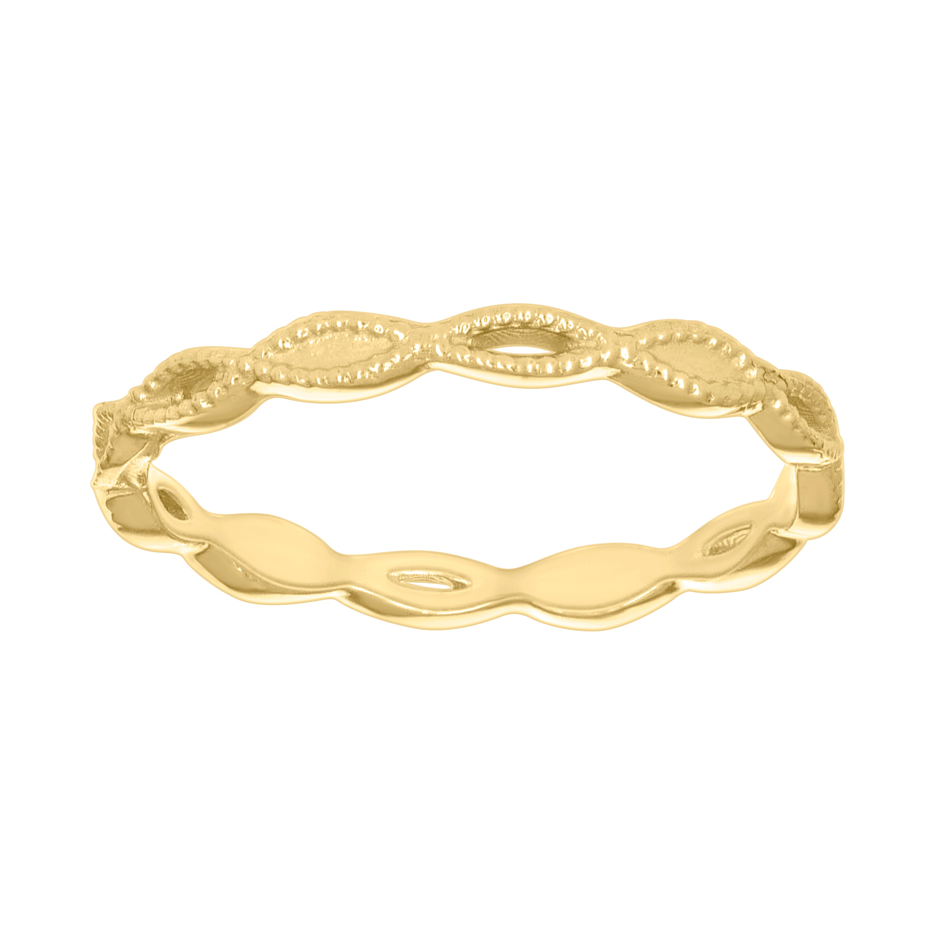 Crafted in luxurious 14kt yellow gold, this elegant Women's Infinity Love Ring embodies a timeless symbol of affection. Its polished finish enhances the delicate silhouette, measuring 1.9 mm in height and 1.5 mm in width, offering a subtle yet sophisticated touch to any ensemble. Designed without cubic zirconia, the ring's minimalist charm focuses on the purity of the infinity motif, making it a perfect gift for someone special or a treasured addition to your own collection. Lightweight at 0.9 grams, it promises comfort alongside its enduring style, capturing the essence of everlasting love in a refined and graceful design.