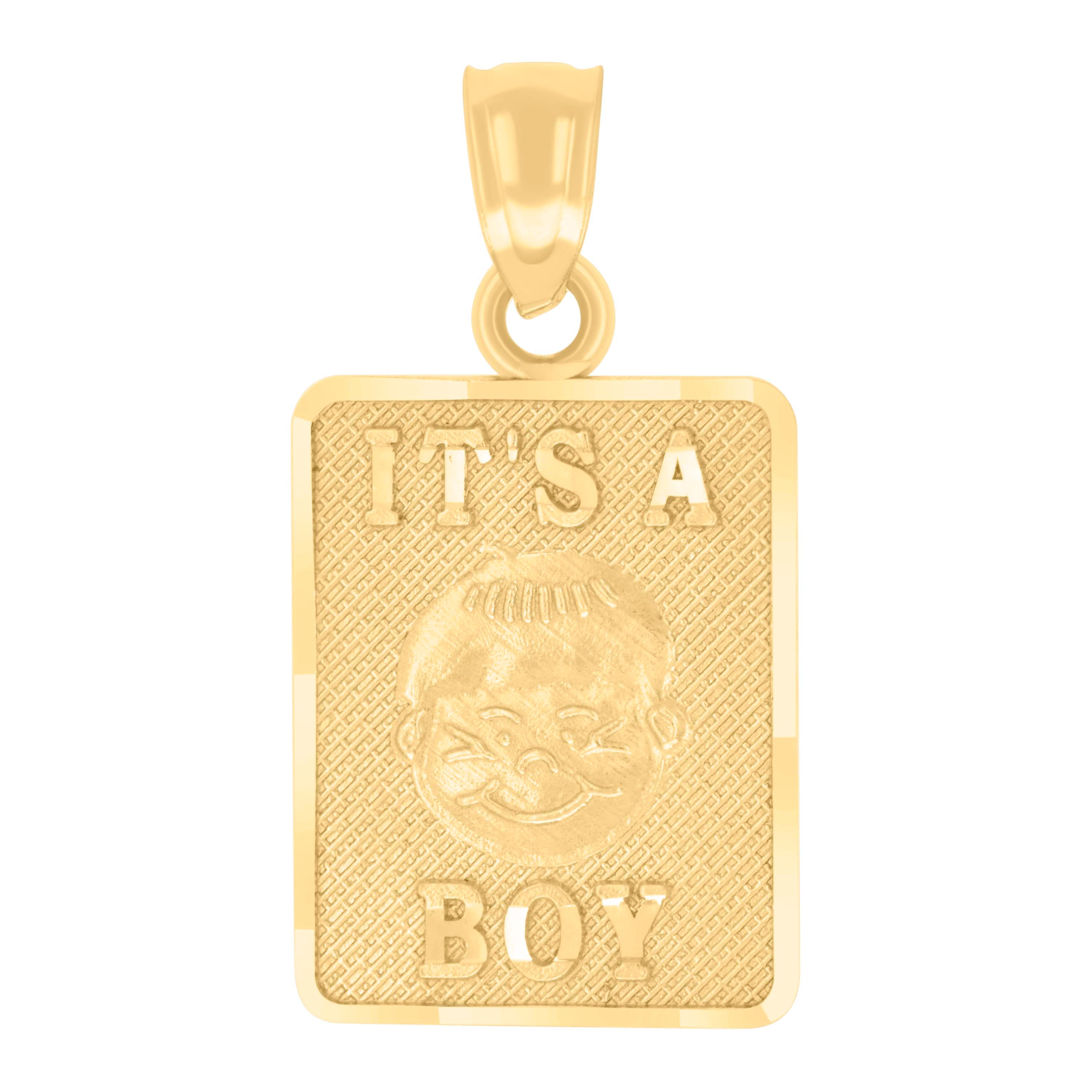 Celebrate the joyous arrival of a baby boy with this exquisite 14kt Yellow Gold "It's A Boy" charm pendant. Weighing 1.1 grams, this textured piece boasts a refined Single Bail closure. Measuring 20.4MM in height and 10.5MM in width, this charm is a perfect blend of elegance and sentiment, designed to be cherished forever.