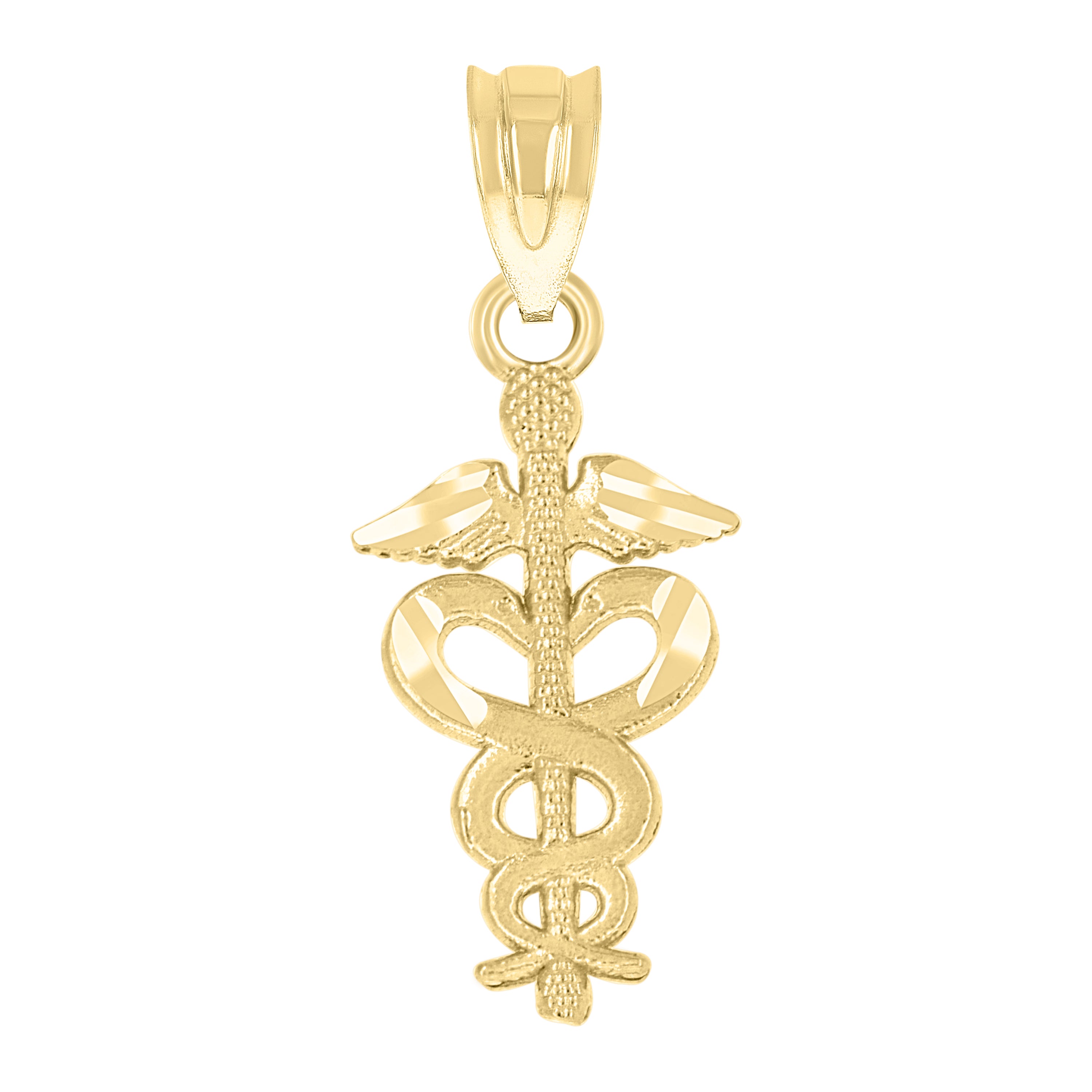 Elevate your style with this elegant 14Kt Yellow Gold RN Nurse Pendant. Crafted with precision, its textured finish adds a touch of sophistication, while the single bail ensures easy attachment to any chain. Measuring 22.8mm in height and 9.7mm in width, this lightweight charm at 0.7 grams is the perfect symbol of dedication and care, making it a thoughtful gift for the nurse in your life.