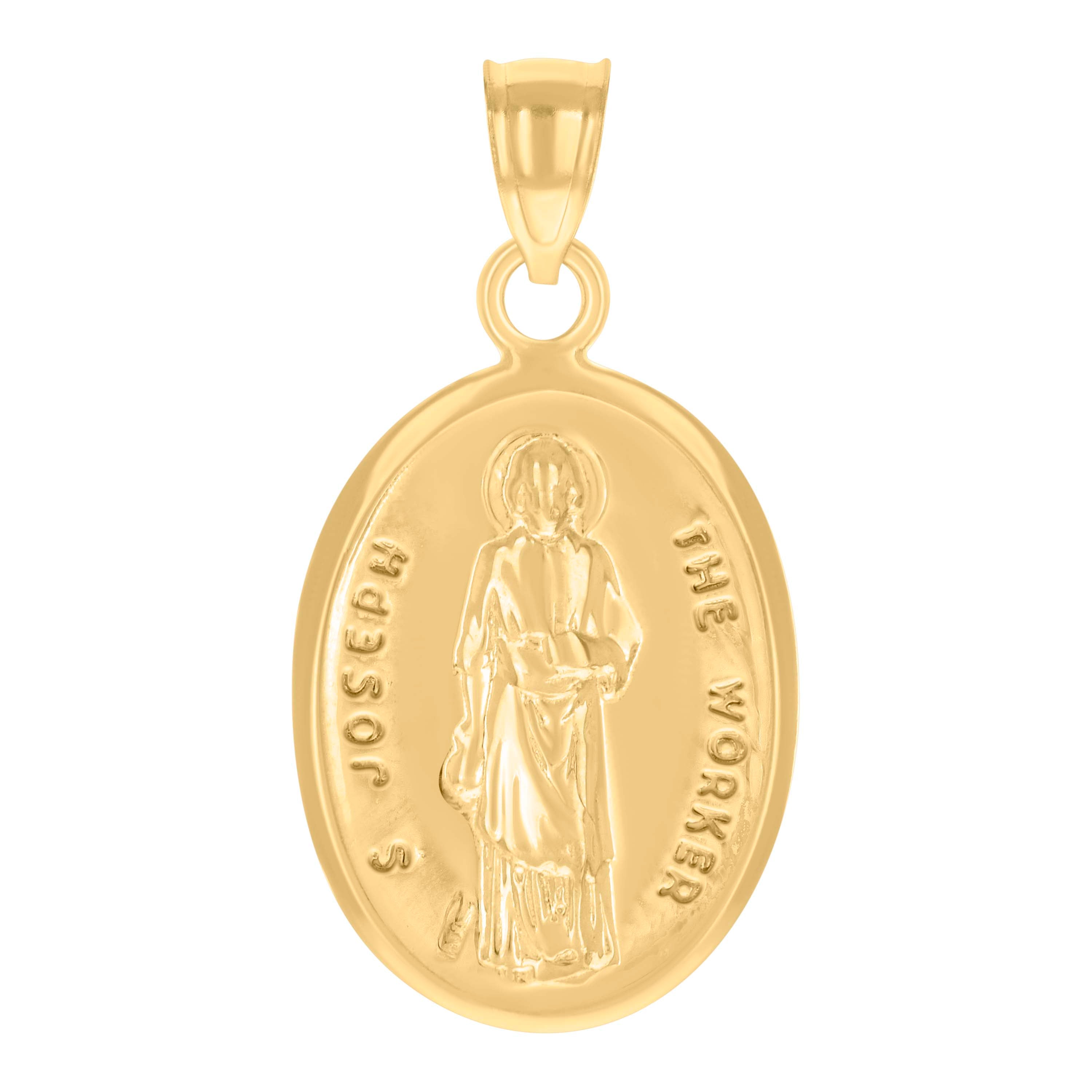 Crafted in radiant 14Kt yellow gold, this Saint Joseph The Worker pendant charm is a stunning symbol of faith and devotion. With a polished finish, its elegant design features a height of 28.4mm and a width of 14.9mm, making it a perfect statement piece. Weighing just 2.4 grams, it hangs gracefully from a single bail, offering timeless appeal without the need for embellishments. Ideal for those seeking a meaningful and stylish accessory.