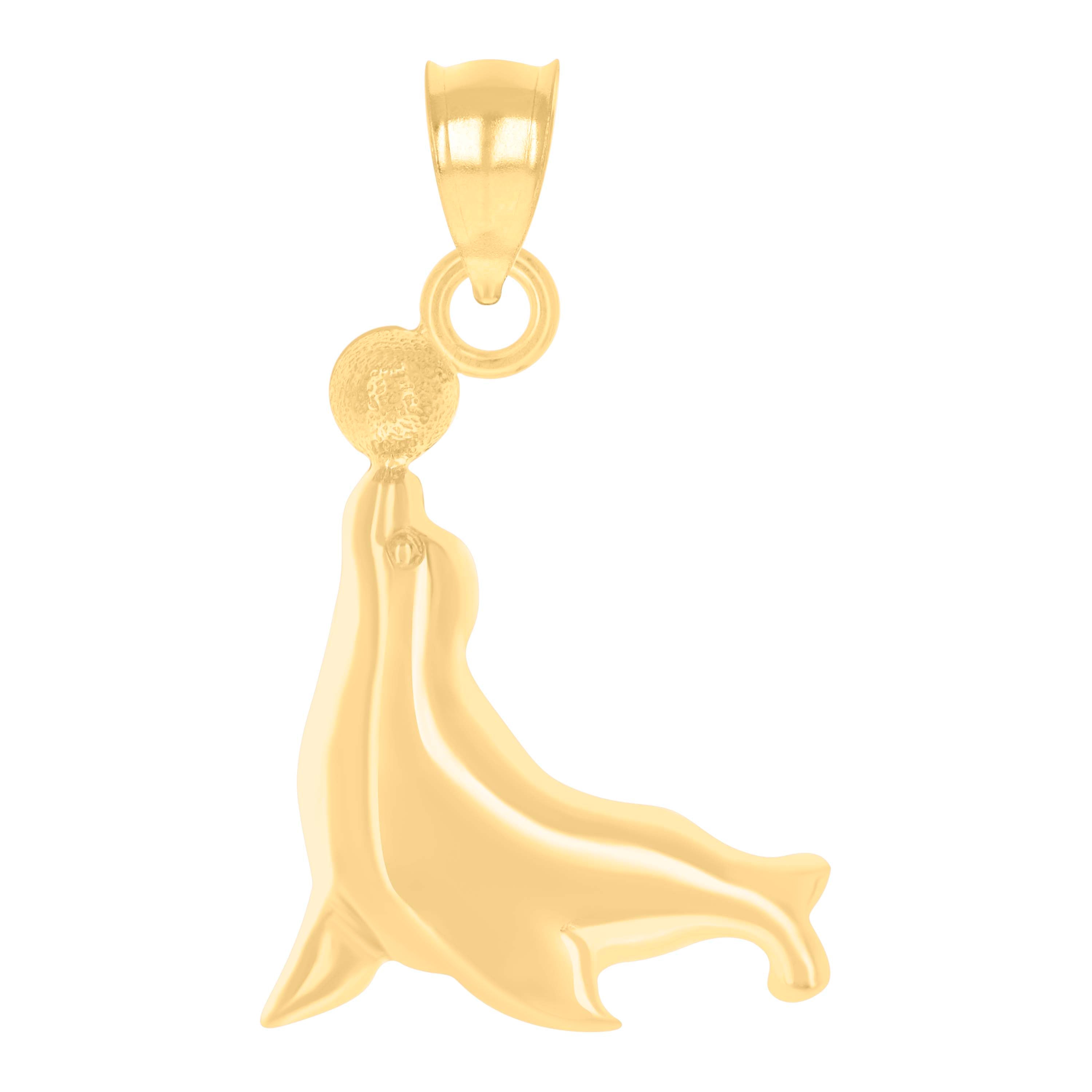 Dive into elegance with this exquisite 14kt Yellow Gold Sea Lion Pendant, capturing the playful spirit of ocean life. Crafted with precision, this polished charm weighs a delicate 1.8 grams, featuring a sea lion gracefully balancing a ball. Measuring 27.7MM in height and 16.2MM in width, it's a perfect blend of whimsy and sophistication. The single bail closure ensures a secure fit on any necklace, making it an enchanting addition to your jewelry collection.