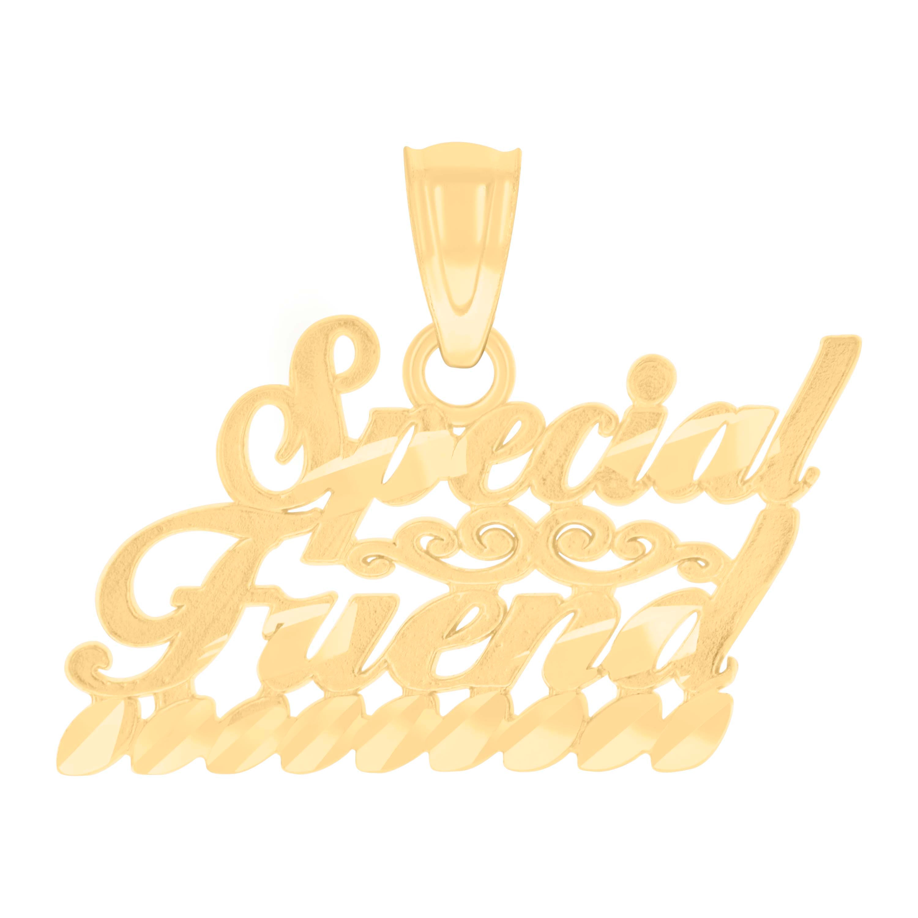 Celebrate the special bond of friendship with this exquisite 14kt Yellow Gold Women's Special Friend Family Talking Charm Pendant. Weighing just 1 gram, this pendant boasts a dazzling diamond-cut finish that captures the light beautifully. Measuring 16.3MM in height and 18.9MM in width, it is elegantly crafted for a subtle yet meaningful statement. The single bail closure ensures it sits perfectly on any chain, offering a timeless piece that honors cherished connections.