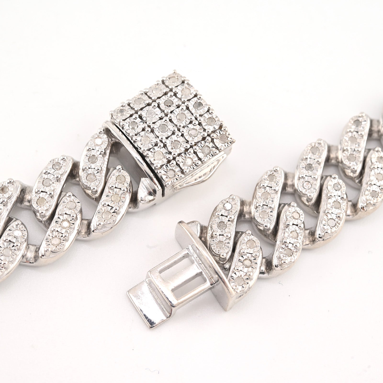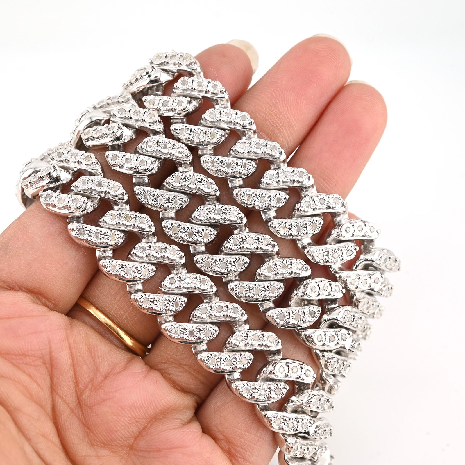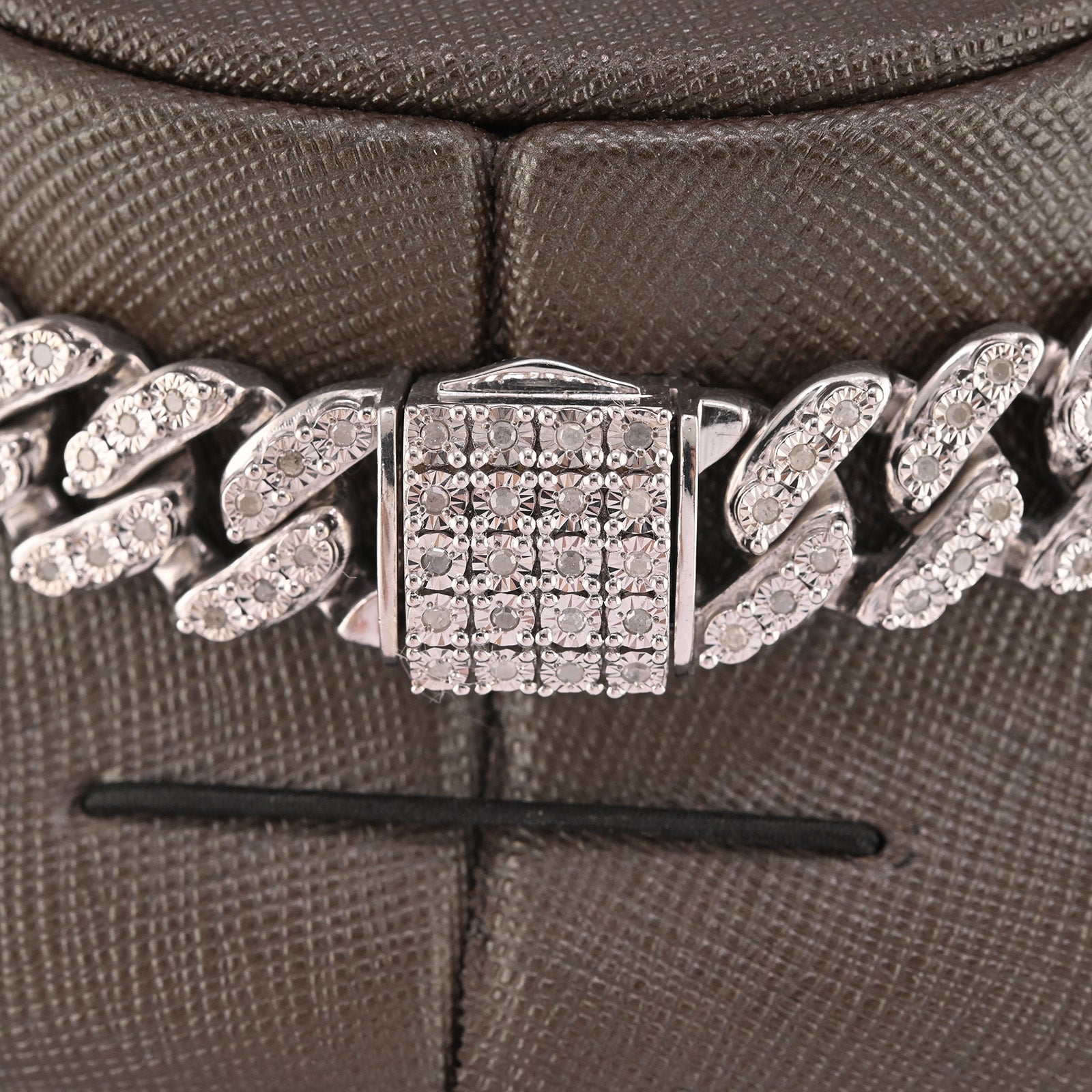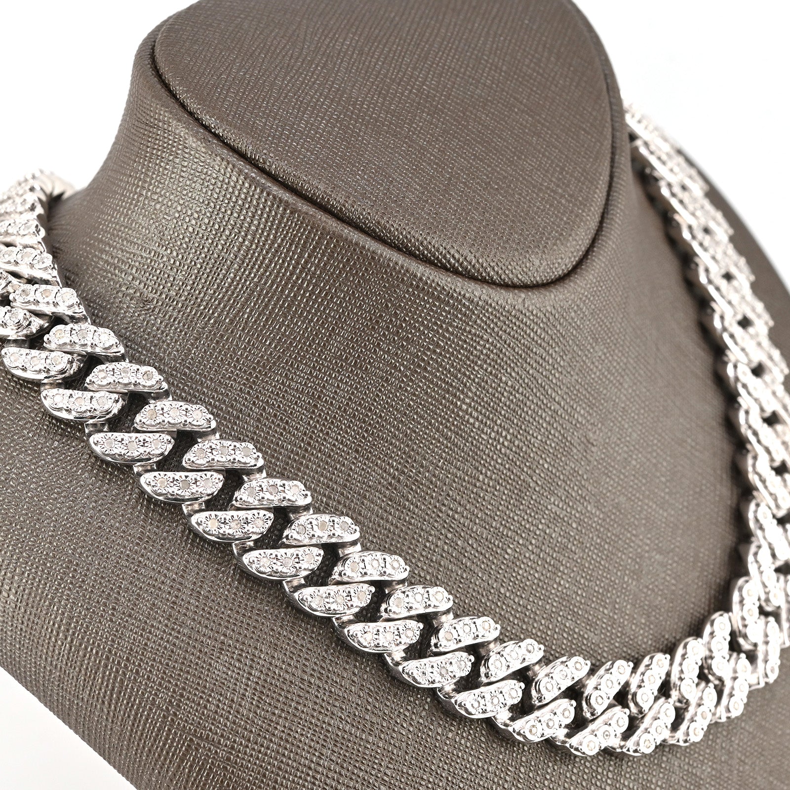 This 22-inch Cuban chain features a 14mm width crafted from high-quality 925 sterling silver, providing both durability and a polished finish. Adorned with natural diamonds totaling 6 carats in a single row, it delivers exceptional brilliance and luxury. Weighing 87.5 grams, this necklace offers substantial presence and lasting comfort, making it a refined statement piece for discerning collectors.