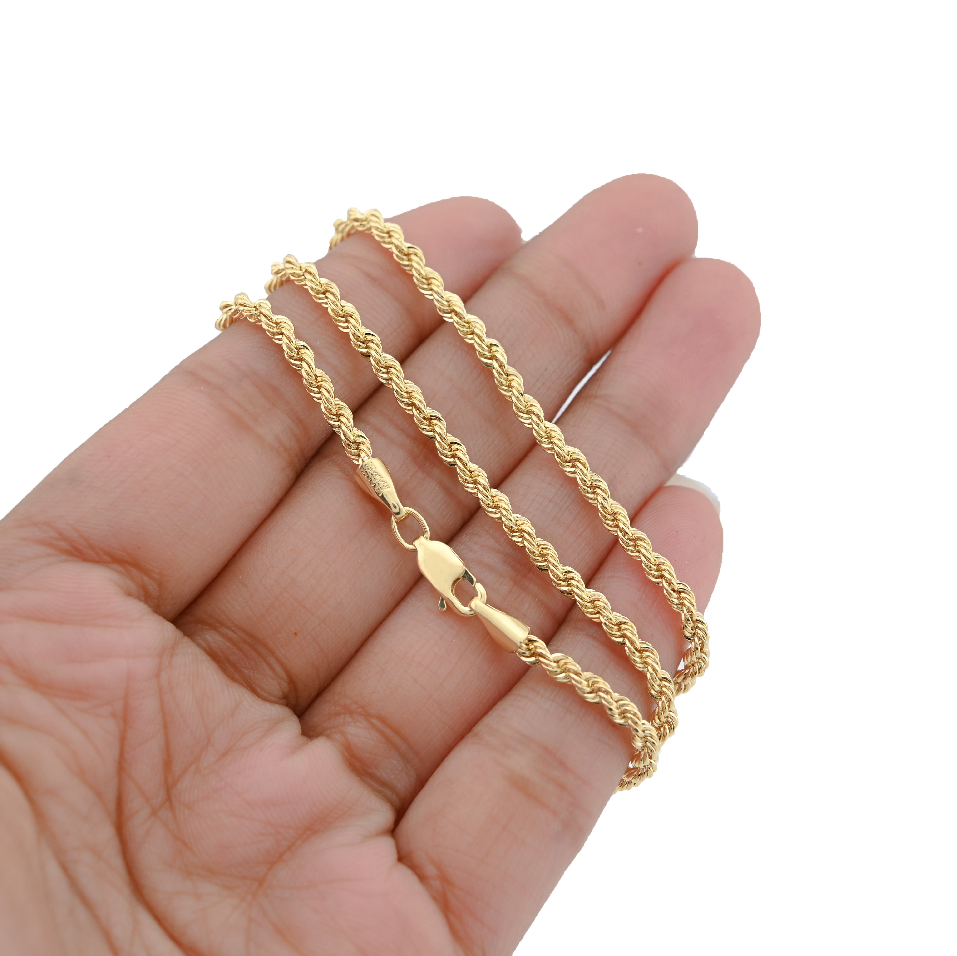 Embrace timeless versatility with this refined rope chain necklace, a foundational piece for any jewelry collection. The delicate 2.5mm twisted design creates visual texture and movement while the 18-inch length offers ideal positioning for layering or standalone wear. Crafted from 925 sterling silver bonded with 1/10th 10k yellow gold, this necklace combines durability with warm aesthetic appeal, offering the best of both materials. At just 3.5 grams, it delivers surprising presence while remaining comfortable for all-day wear without fatigue. The rope pattern's intricate twisting creates sophisticated visual interest that catches light beautifully, while the gold bonding develops character with time. Unisex in design, this necklace transcends gender conventions, functioning equally well for any personal style aesthetic. A practical investment piece that serves as a reliable foundation for pendant styling or cherished standalone wear—sophisticated simplicity for the discerning wearer.