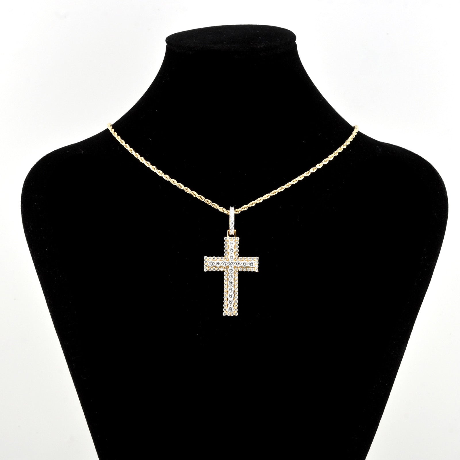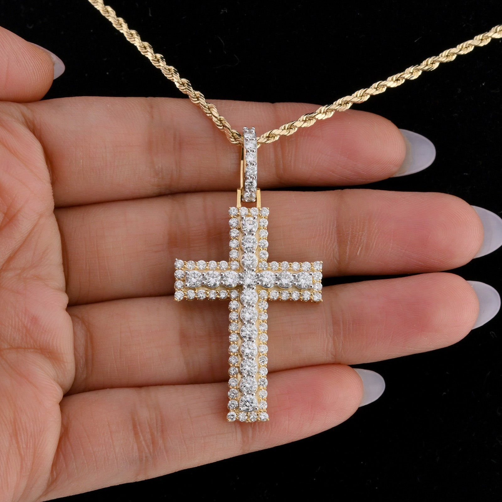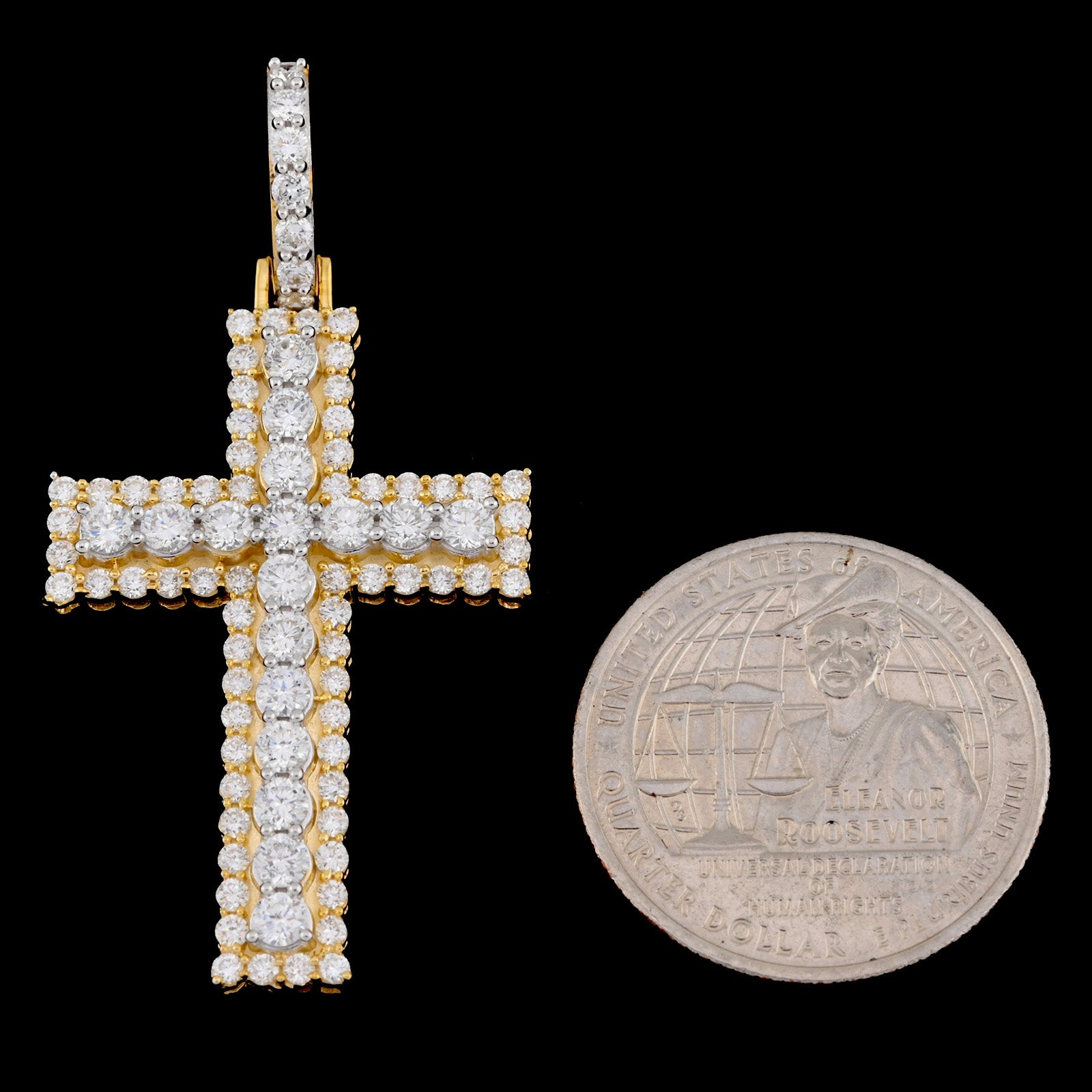 10k White/Yellow Gold 2.6CT Lab Grown Diamond Cross Pendant 6.6g Religious Charm.